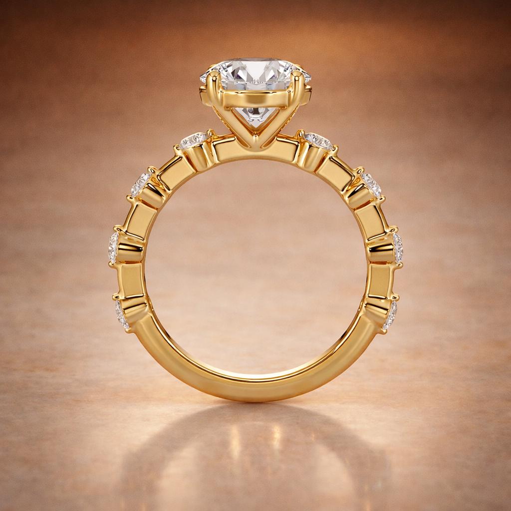 2.5 Carat Round Lab Diamond Engagement Ring | 14K Gold, Side Stones