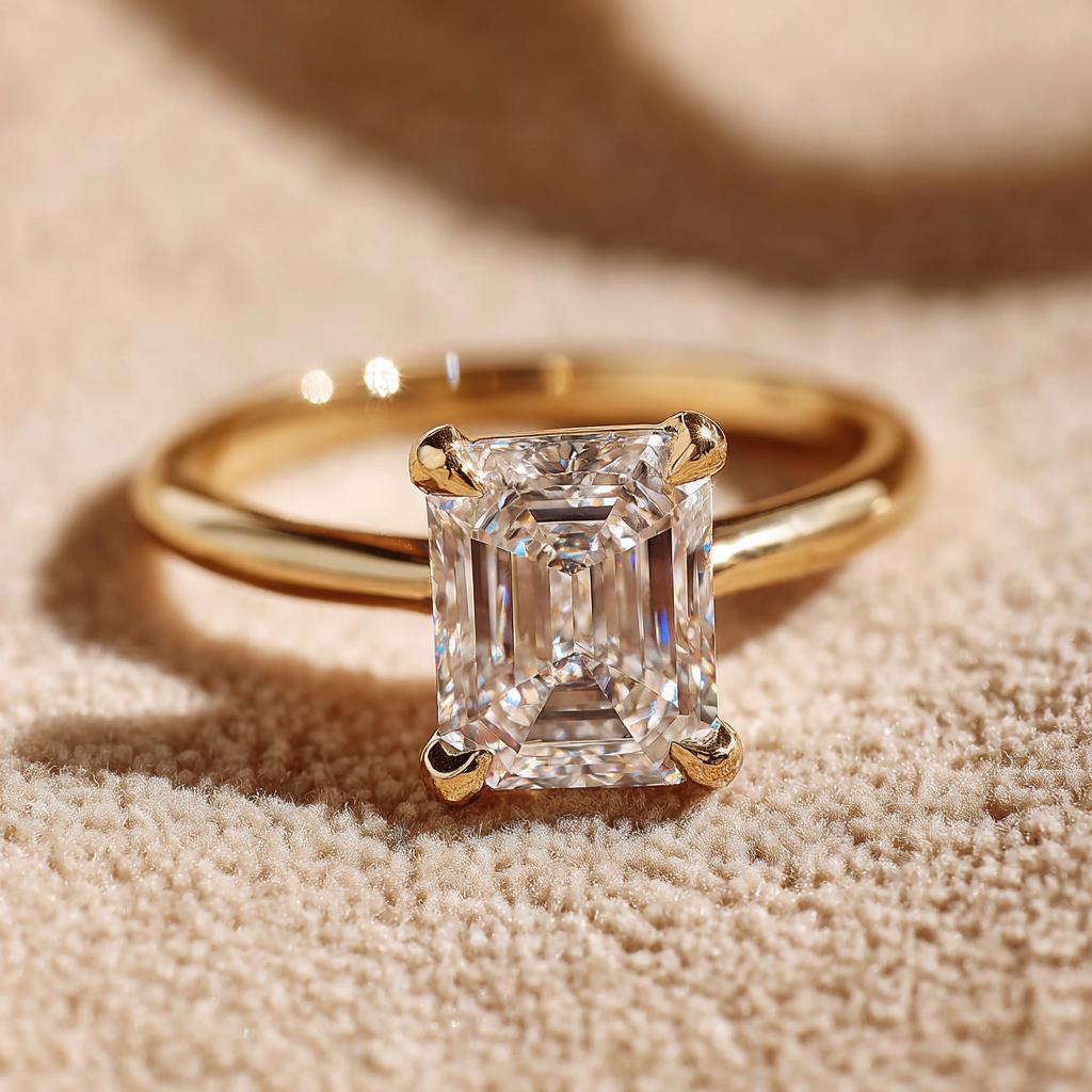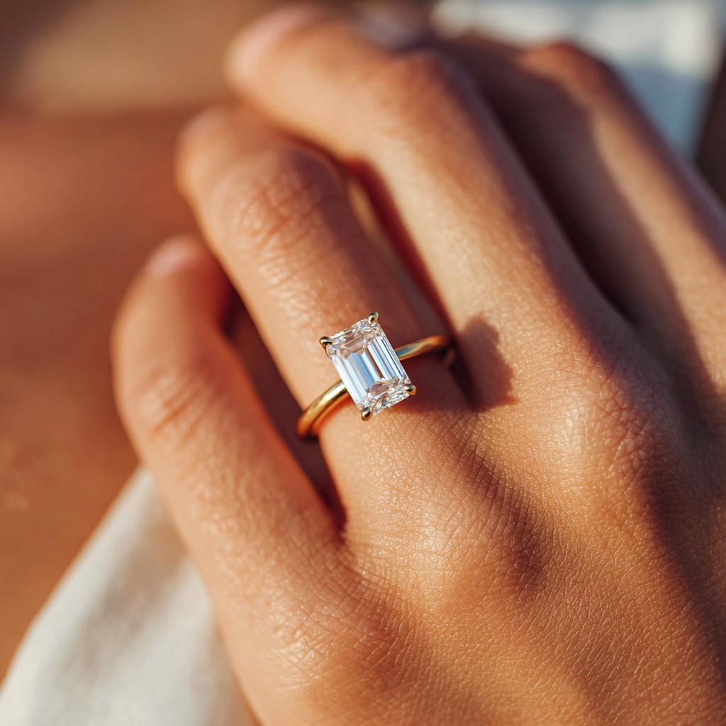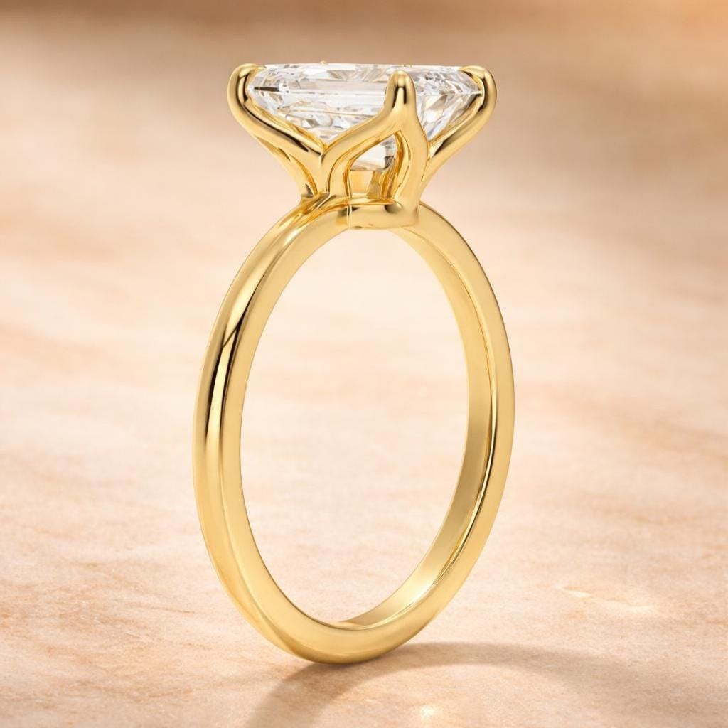 1.5 Carat Emerald Cut Lab Grown Diamond, Solitaire Delicate Engagement Ring