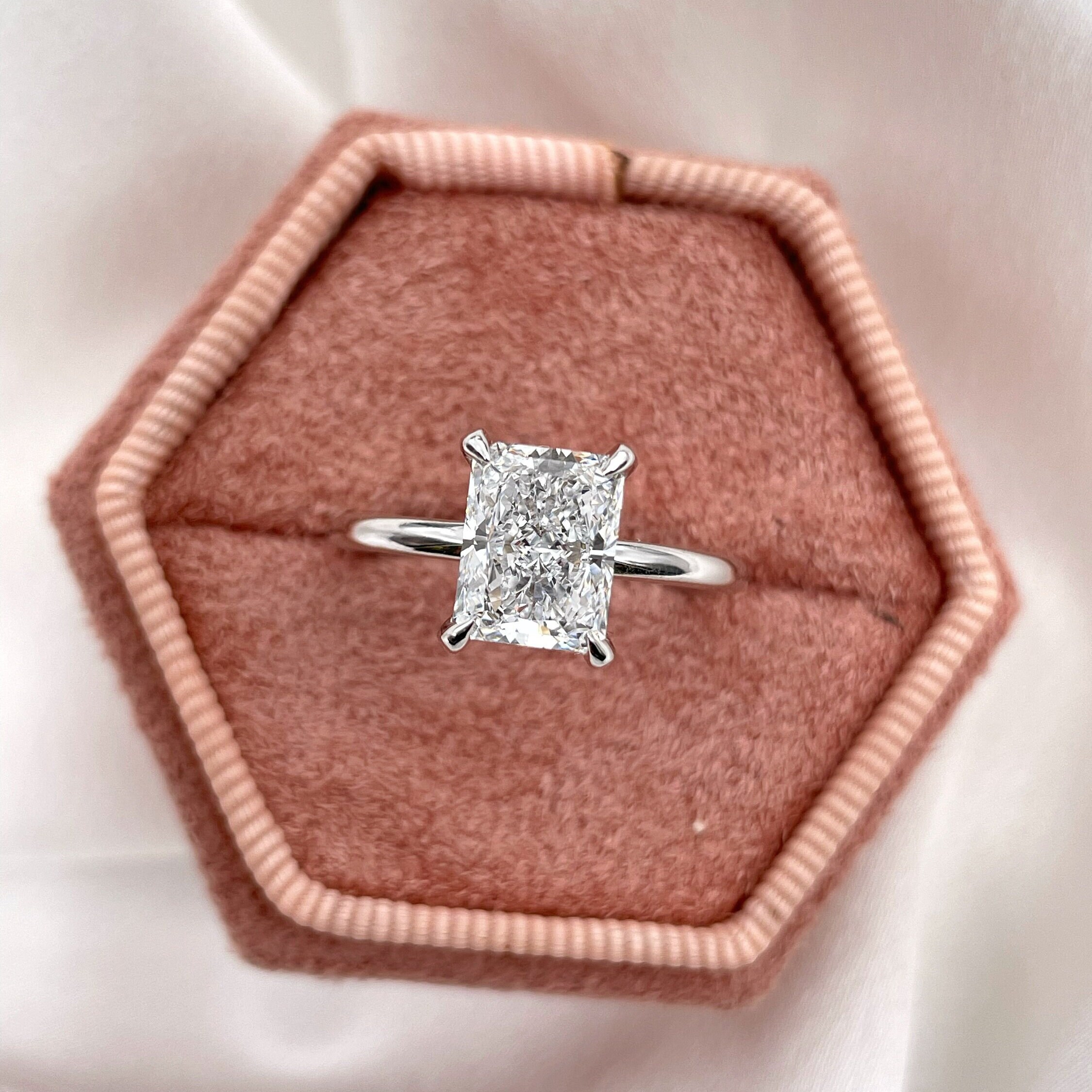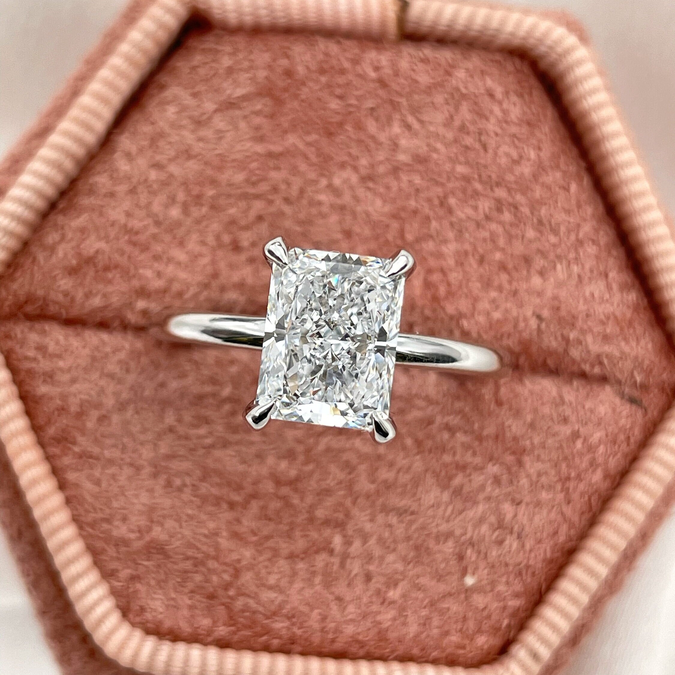 ✨ 2.00 CT Radiant Cut Lab Diamond Solitaire Ring – Hidden Halo ✨