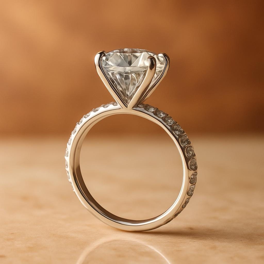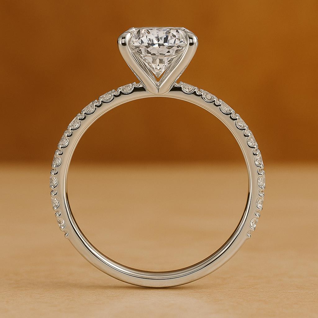 4 Carat Round Cut Lab Diamond Engagement Ring | White Gold Pavé Bridal Ring