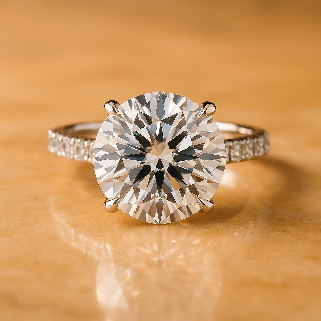 Celebrate your love with this dazzling 4 carat diamond ring, a true symbol of brilliance and commitment. This stunning lab grown engagement ring features a round cut lab diamond, IGI certified with an exceptional E color and VVS2 clarity. Expertly crafted for maximum sparkle, the ideal cut of this lab diamond ring ensures breathtaking fire and brilliance from every angle.