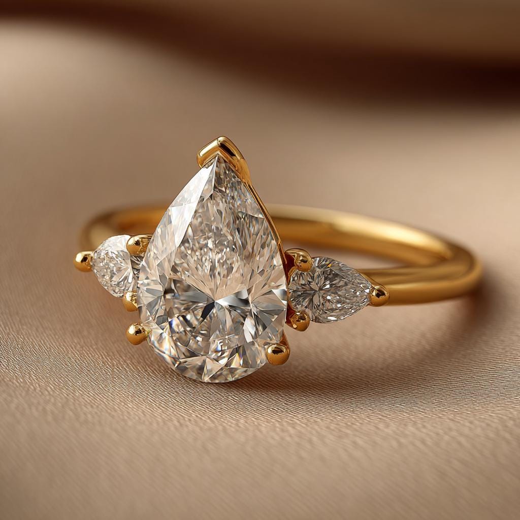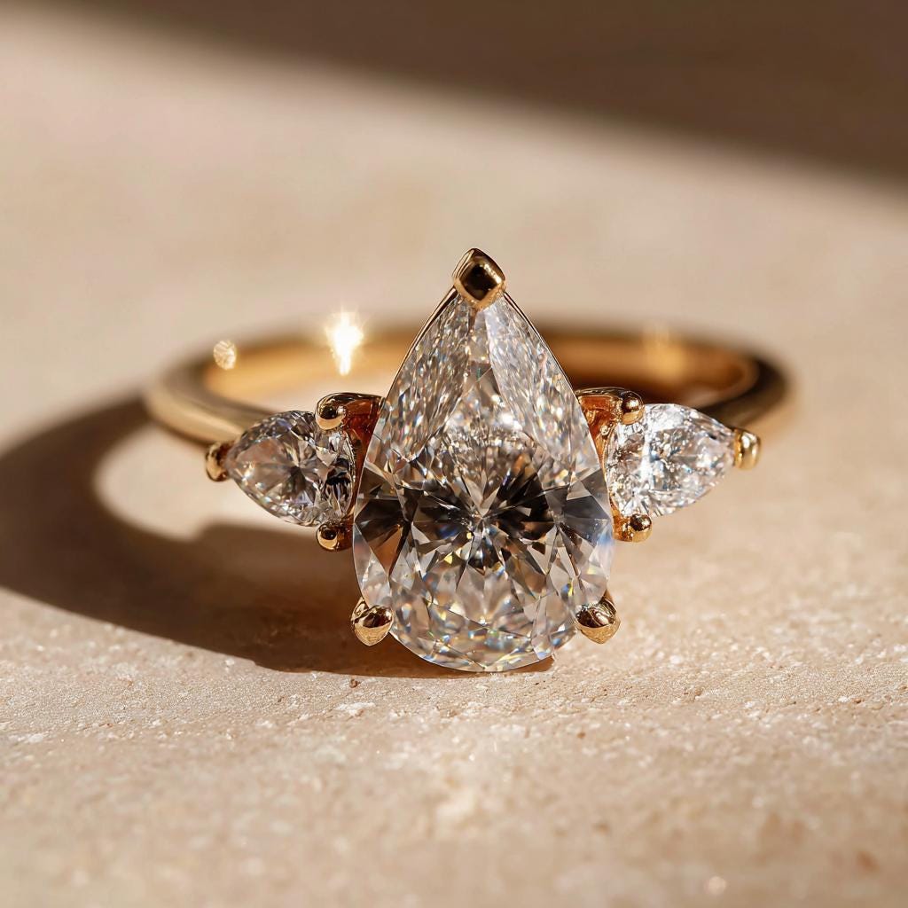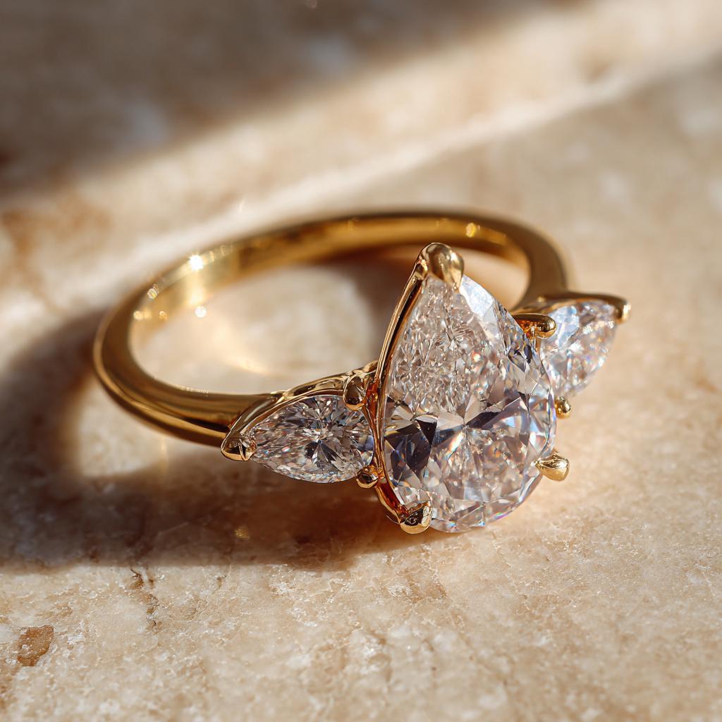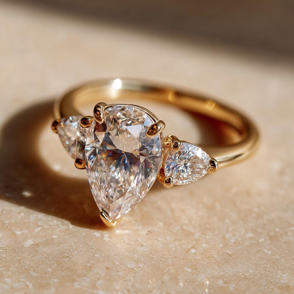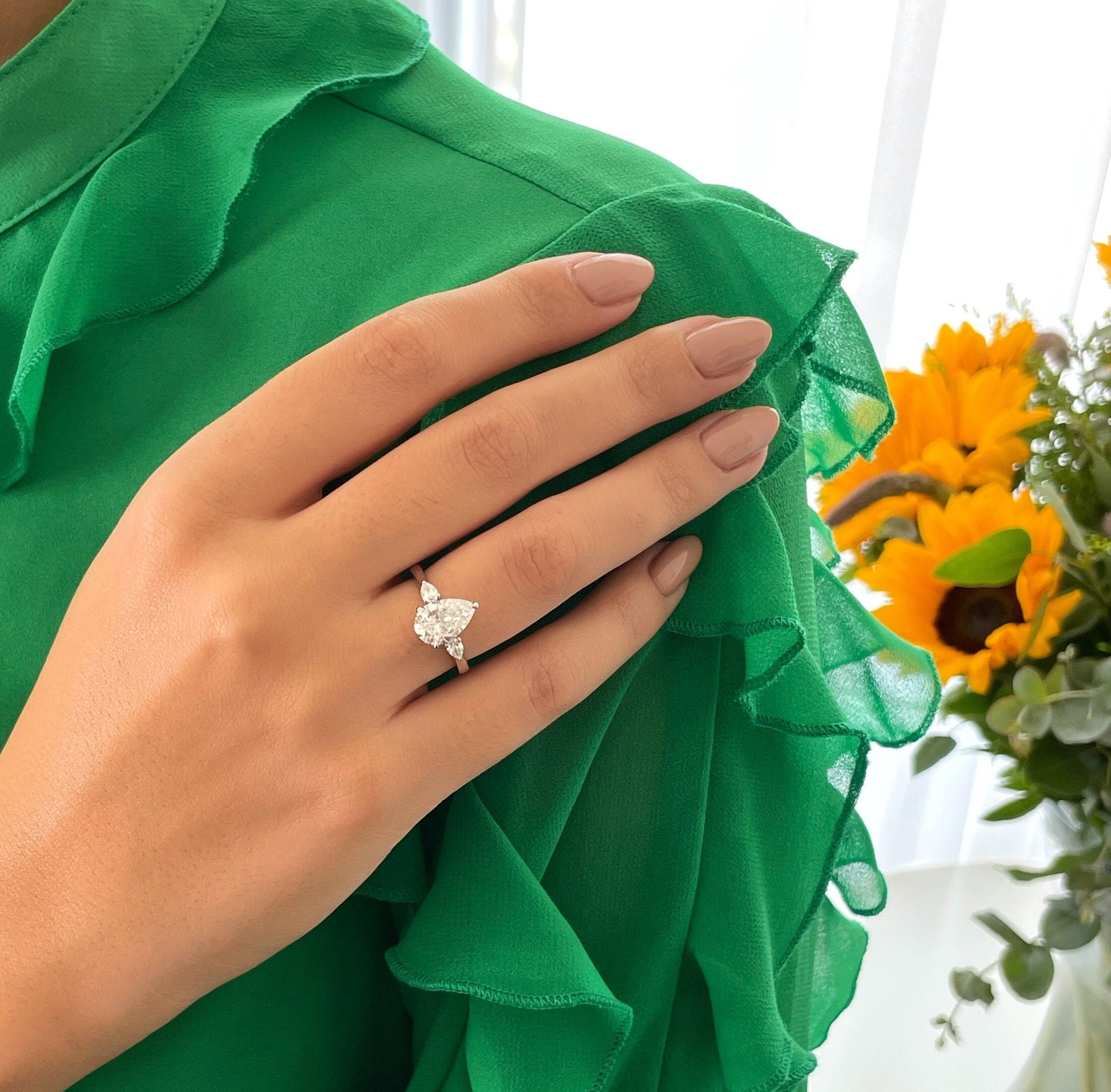 Celebrate your love story with this breathtaking pear shape lab grown diamond engagement ring, a symbol of elegance, intention, and forever. This 4.50 carat pear lab diamond ring features a dazzling 3.00 carat pear cut lab created diamond as the centerpiece, flanked by two 0.75 carat pear diamonds on either side, creating a stunning three-stone design.