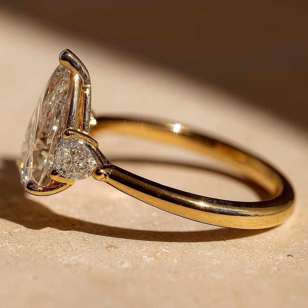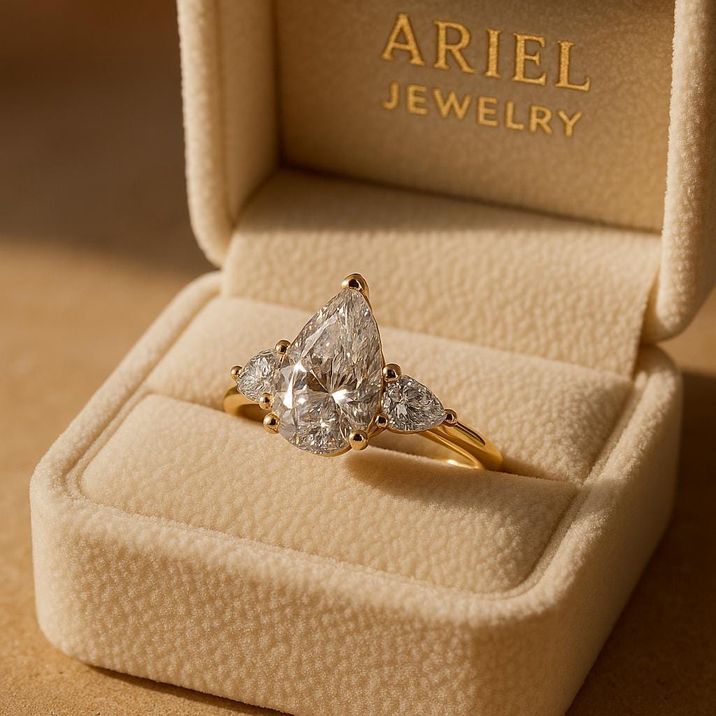 Whether you're planning the perfect proposal ring or searching for a meaningful diamond ring to mark an anniversary, this elegant piece is a standout choice for the modern bride. The pear ring engagement design captures light from every angle, and its symbolism past, present, future makes it even more special.