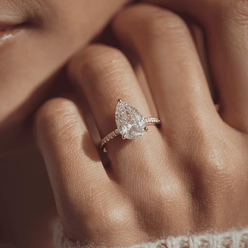 • Center Stone: 4 Carat Lab Grown Diamond (Pear Shape)