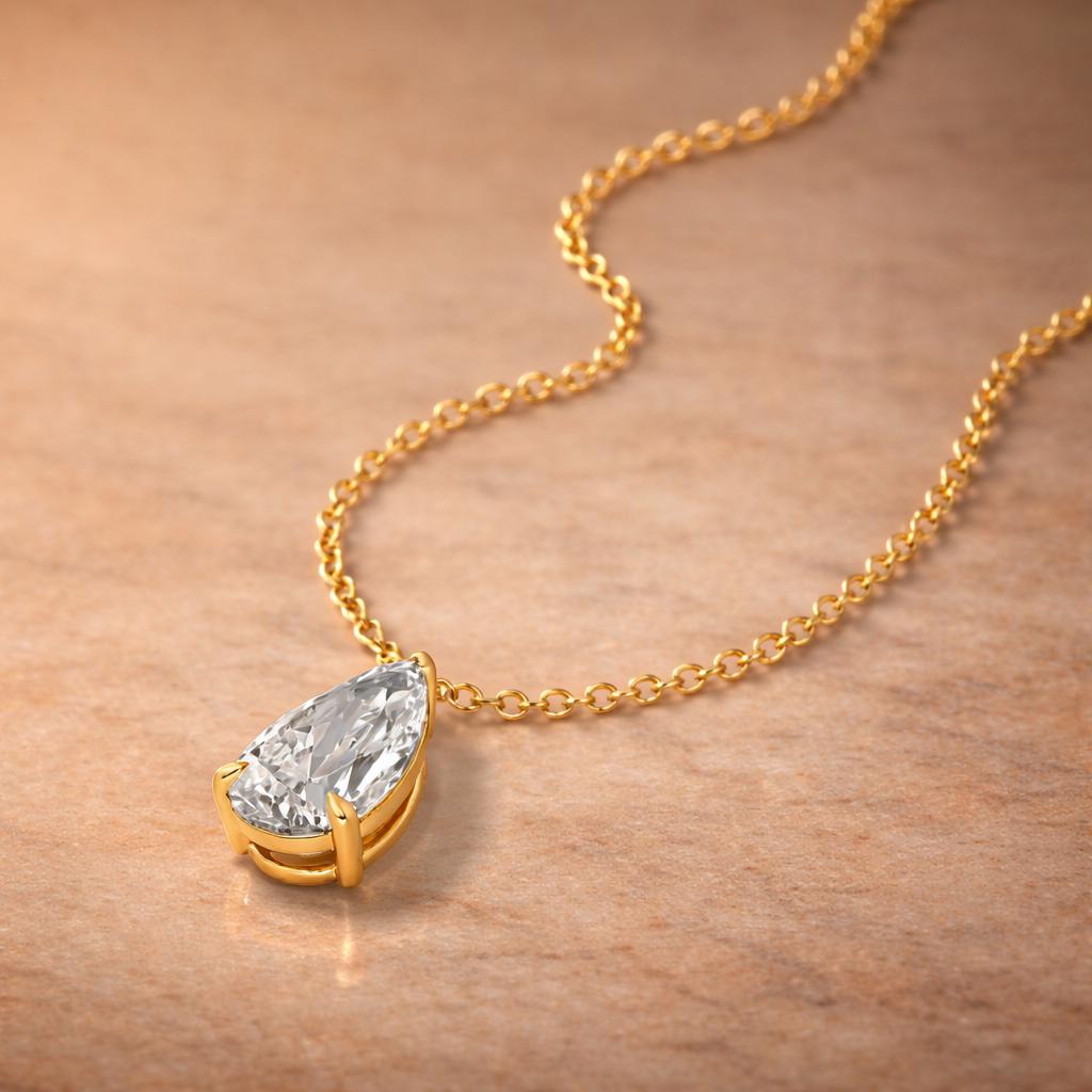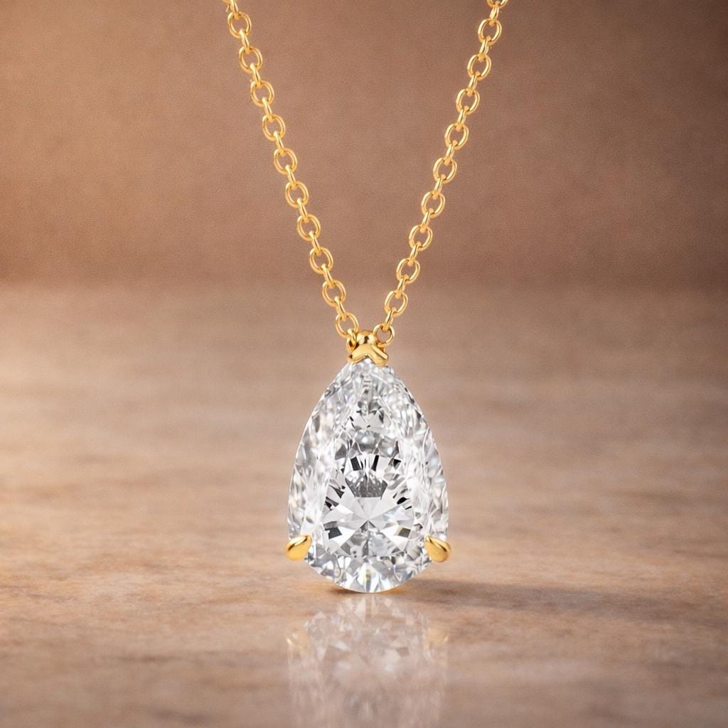 ✨ 3 Carat Pear Shape Lab Diamond Pendant Necklace | Rolo Chain ✨