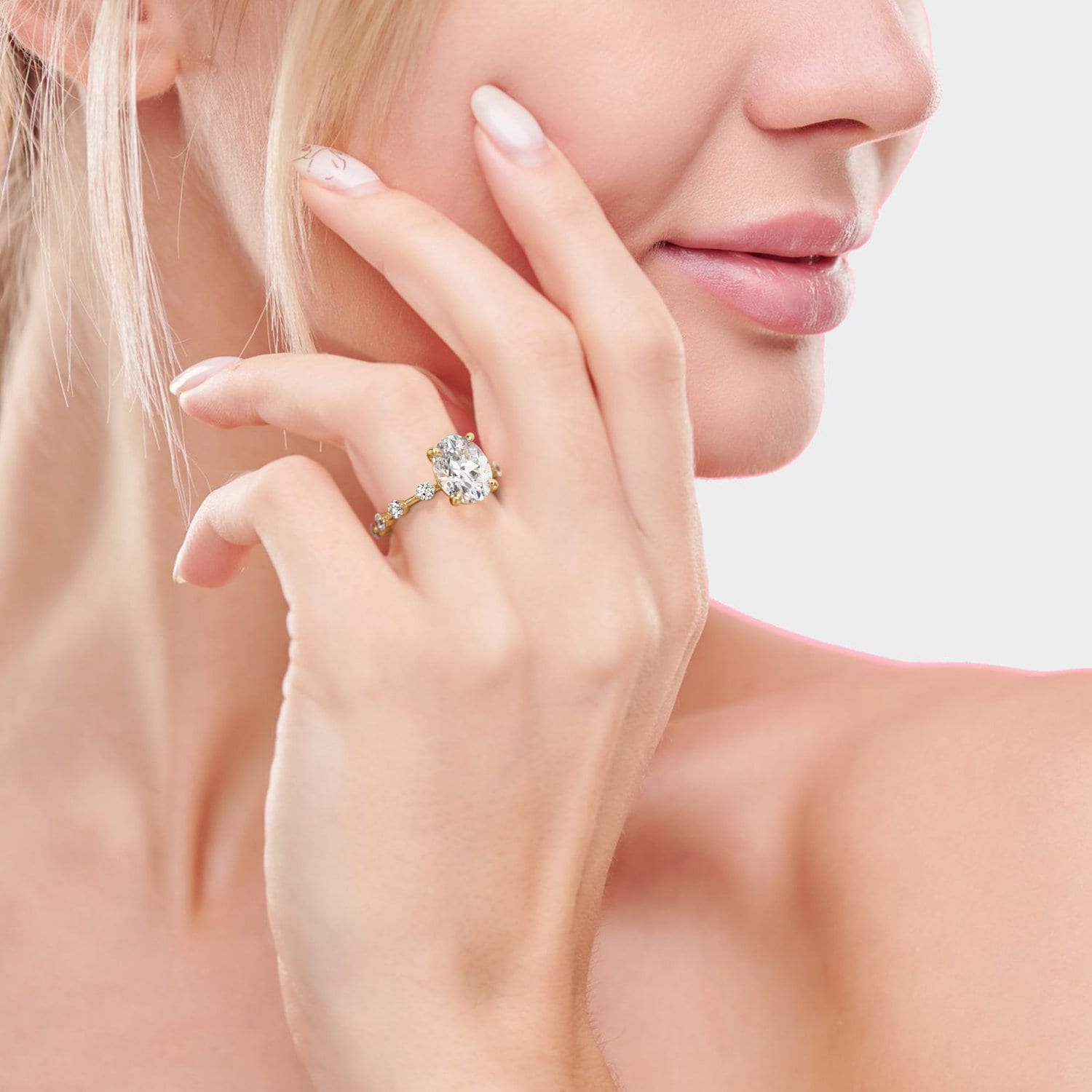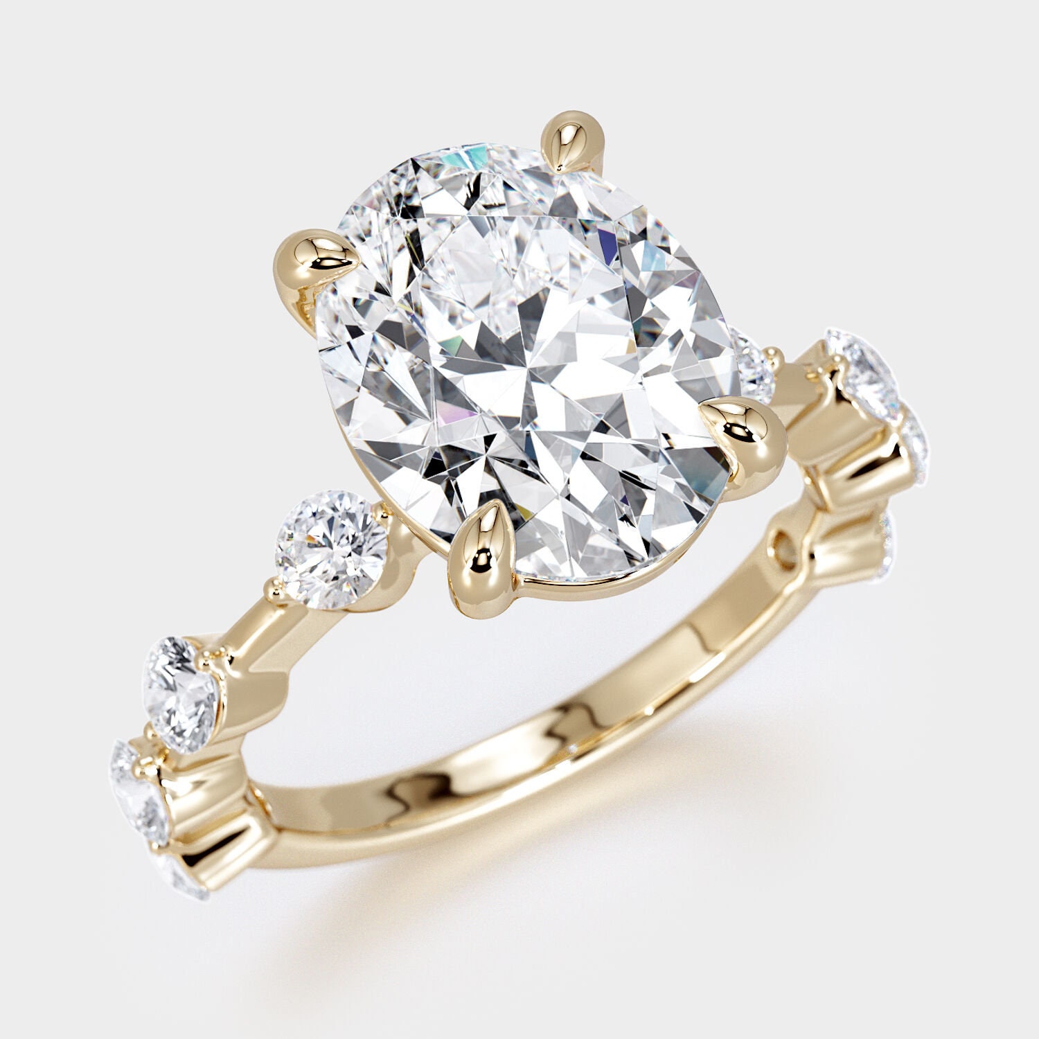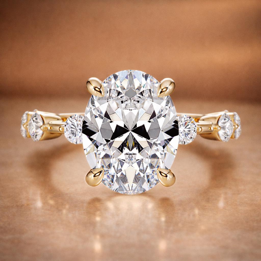 Simply spectacular and well-made, this oval-cut diamond fantasy will be the center of attention in any room.