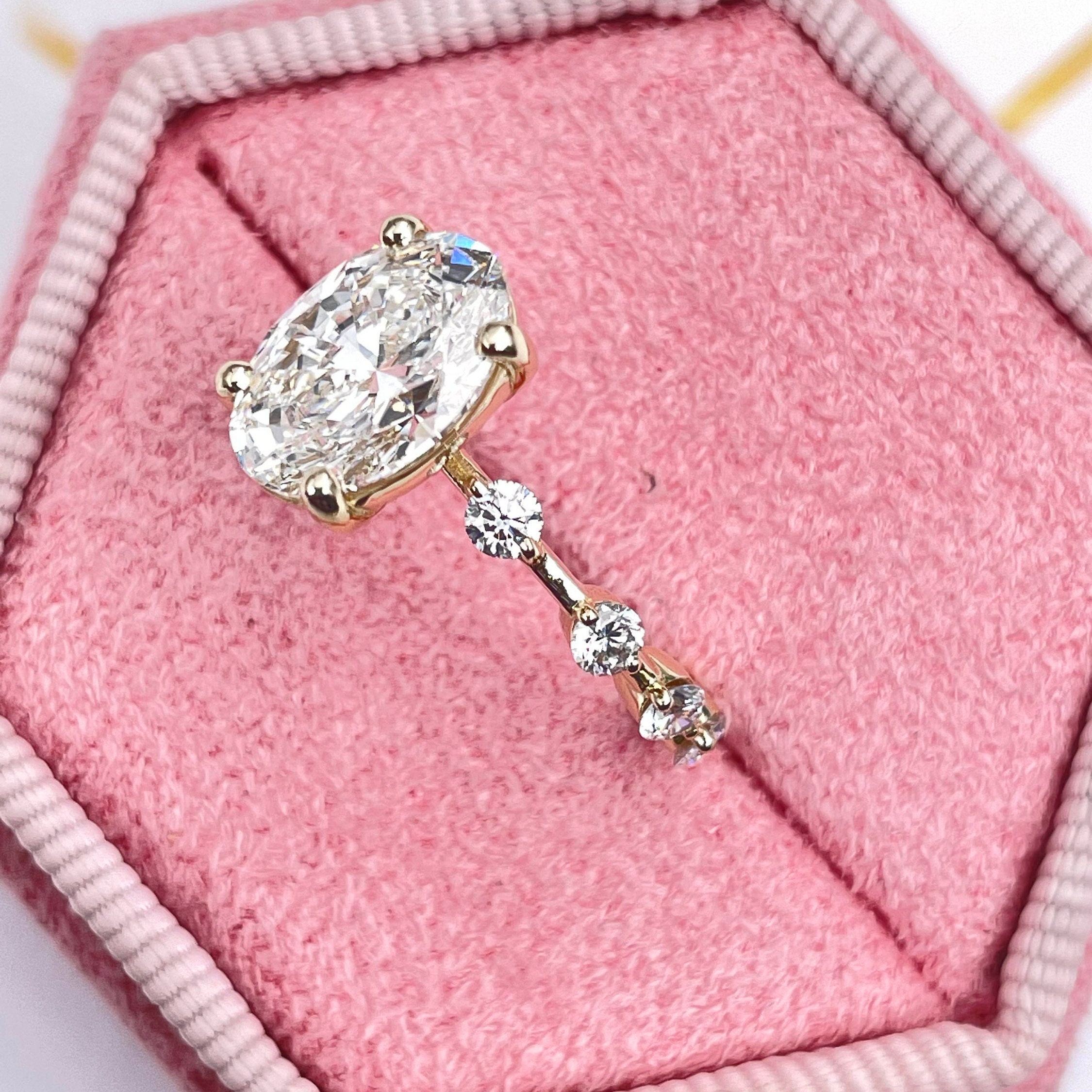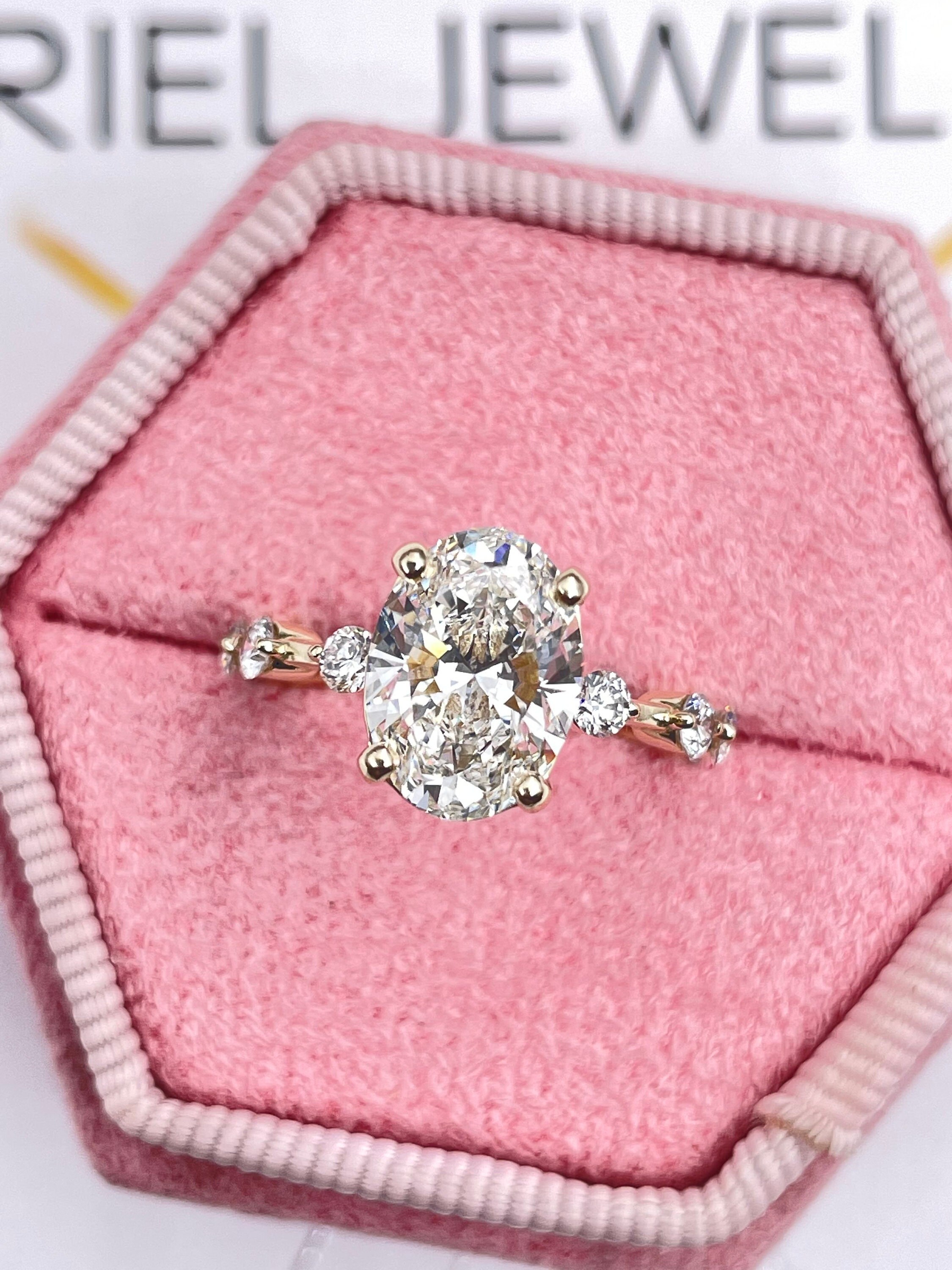 2.41 Carat Oval Cut Lab Grown Diamond G Color VS1 Clarity Certified By IGI, Ring with accent Engagement Ring , 14K Yellow Gold