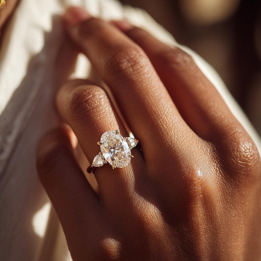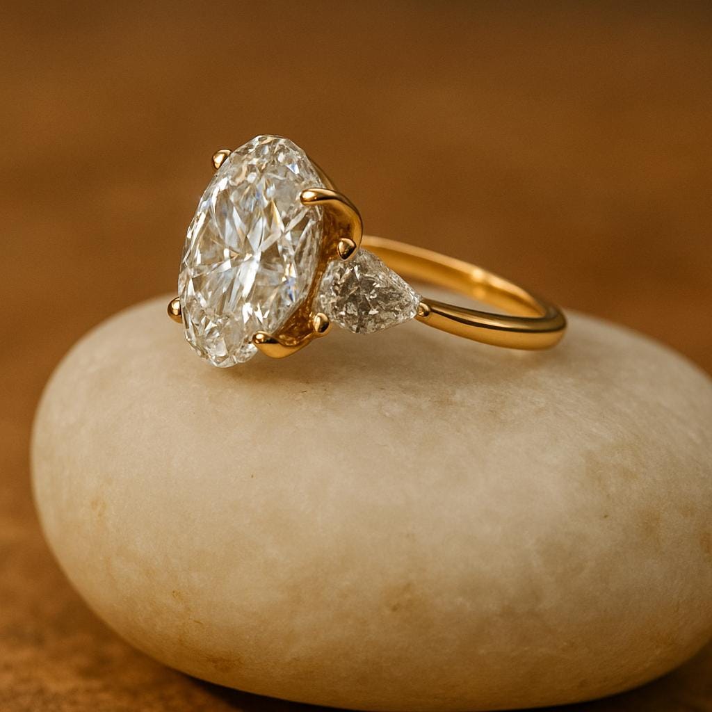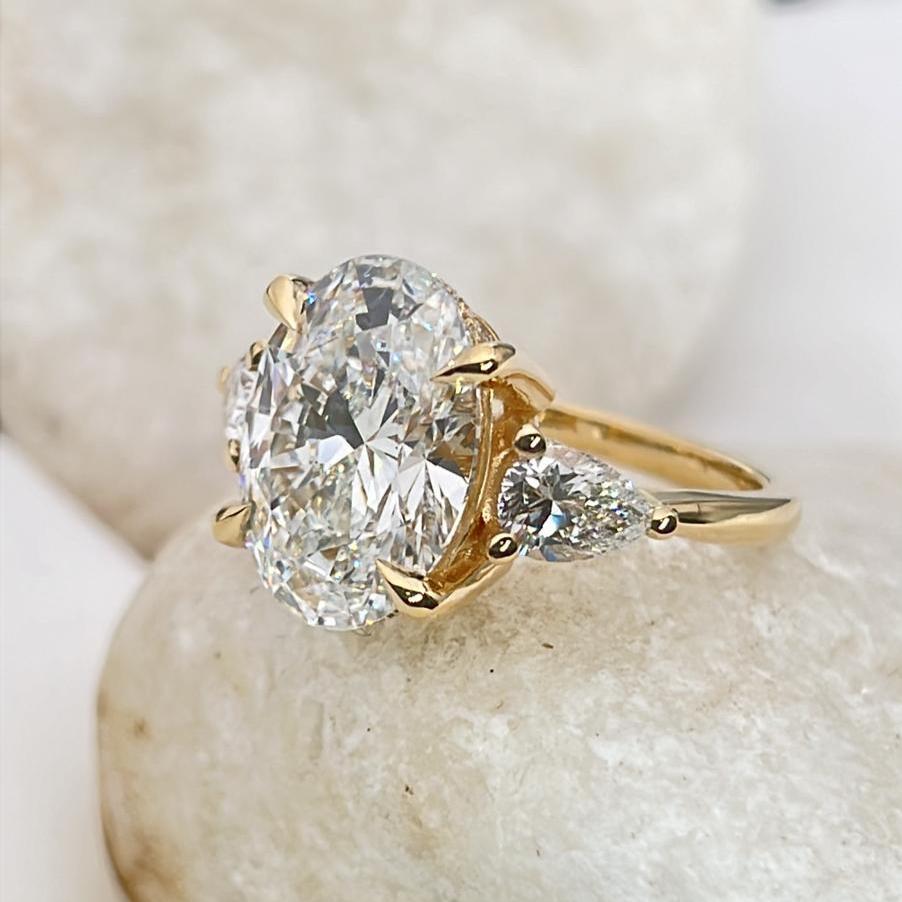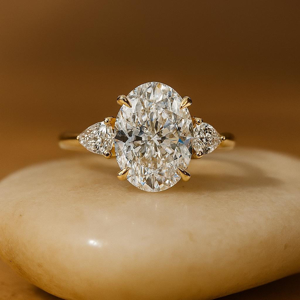 3 CT Oval Lab Diamond Engagement Ring | Pear Side Stones, 14K Gold