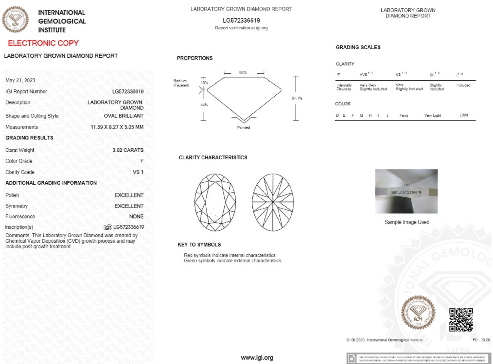 Center Stone: 3.00 Carat Oval Cut Lab Grown Diamond