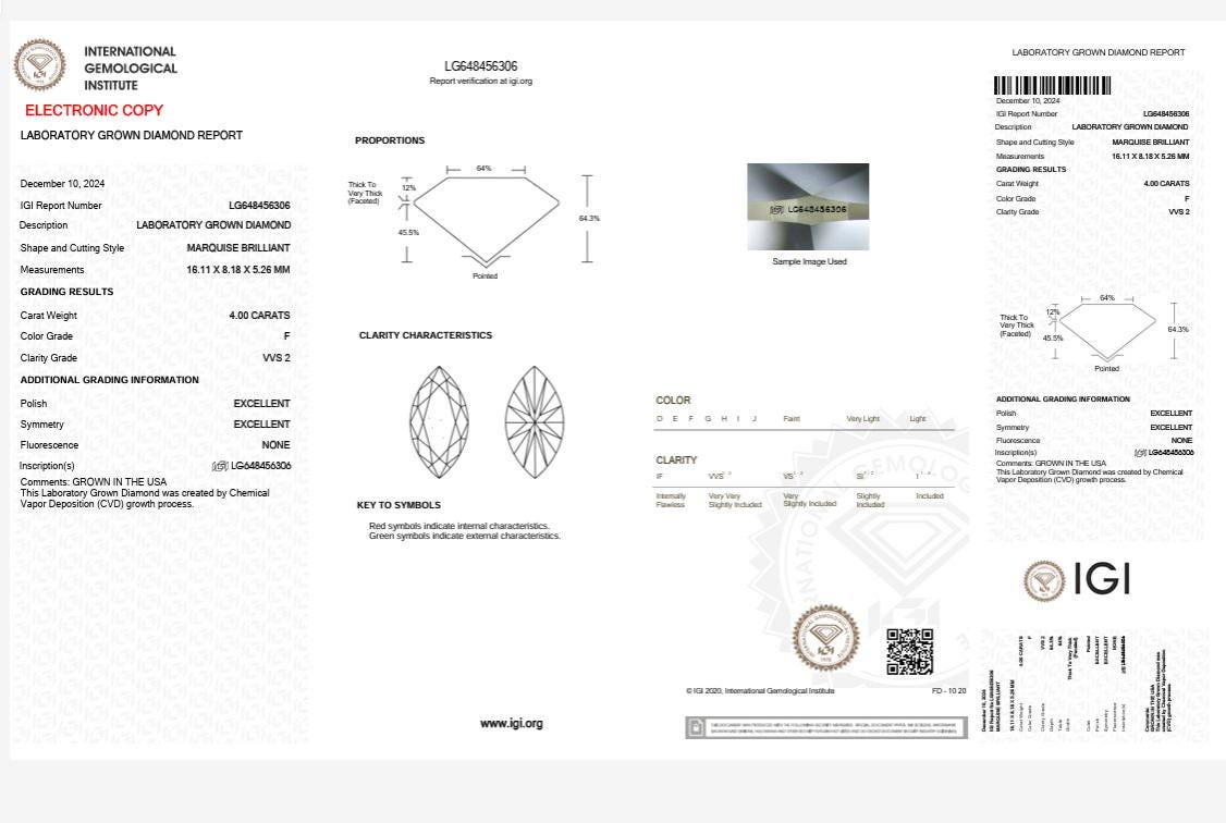 ✨4.50 Carat Marquise Lab Diamond Engagement Ring – IGI Certified | White Gold