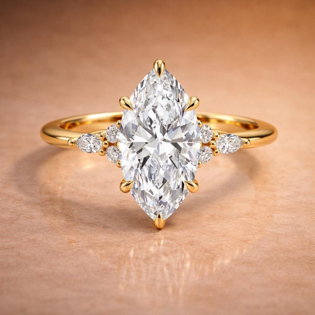 ✨4.50 Carat Marquise Lab Diamond Engagement Ring – IGI Certified | Yellow Gold