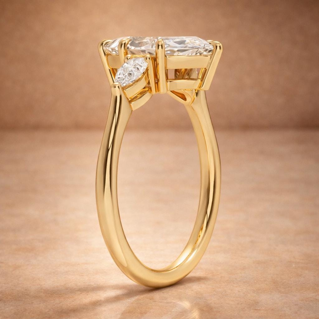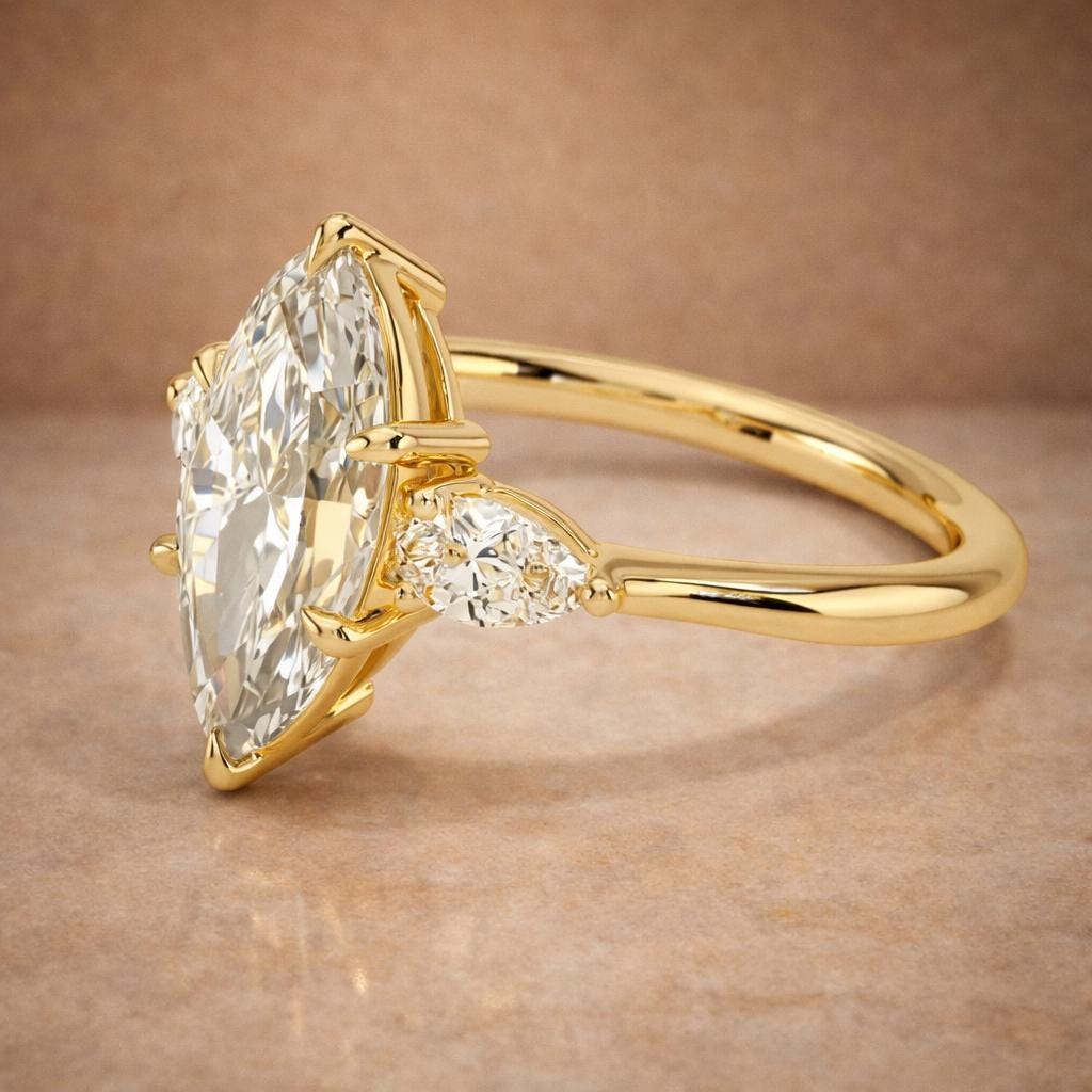3 Carat Marquise Diamond Engagement Ring – IGI Certified Yellow Gold | Three-Stone Design
