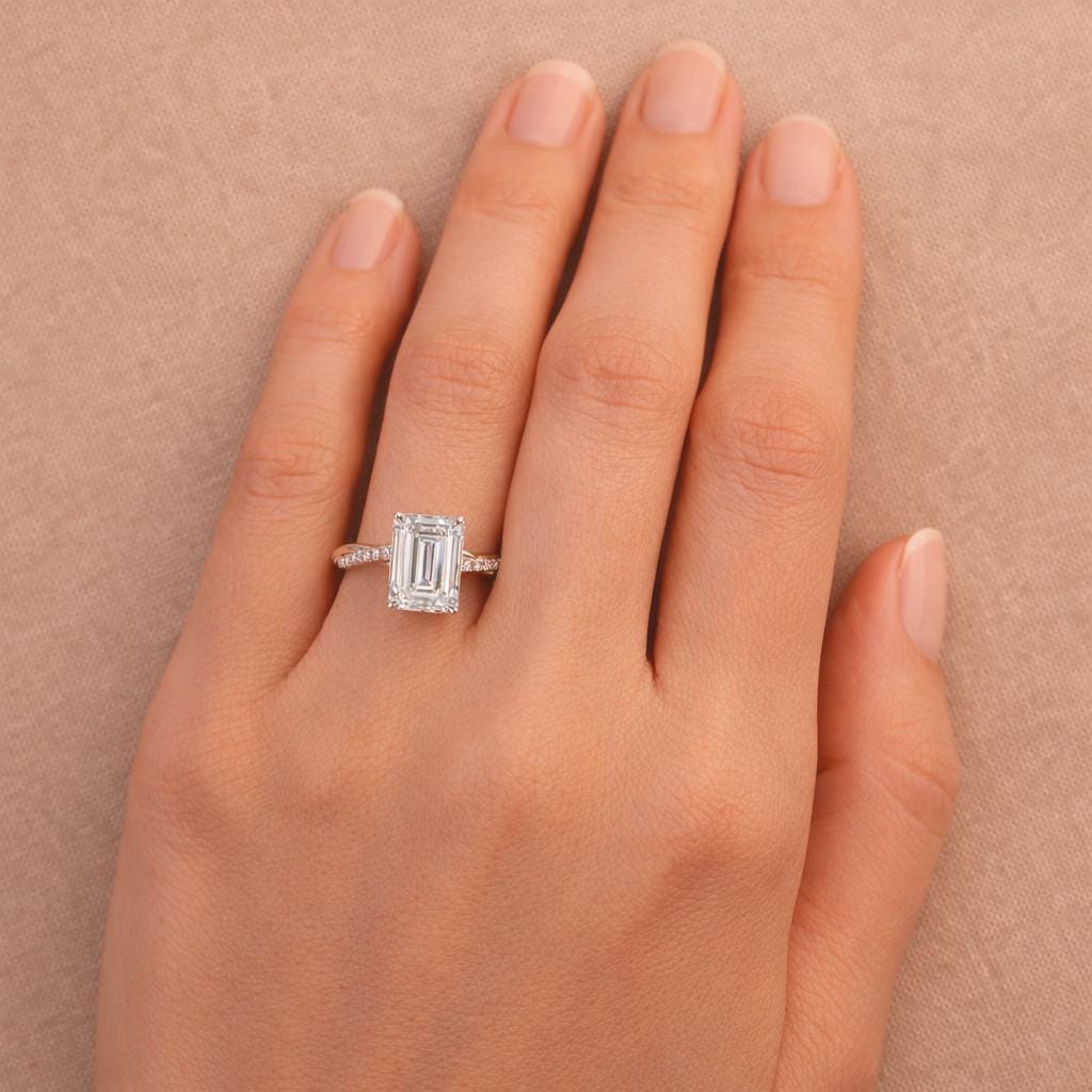 Make a timeless statement with this breathtaking 5 carat emerald cut lab-grown diamond engagement ring, designed to highlight clean lines, elegant sparkle, and modern luxury.