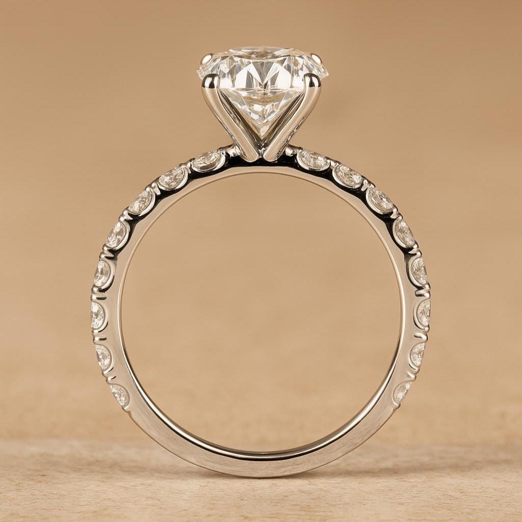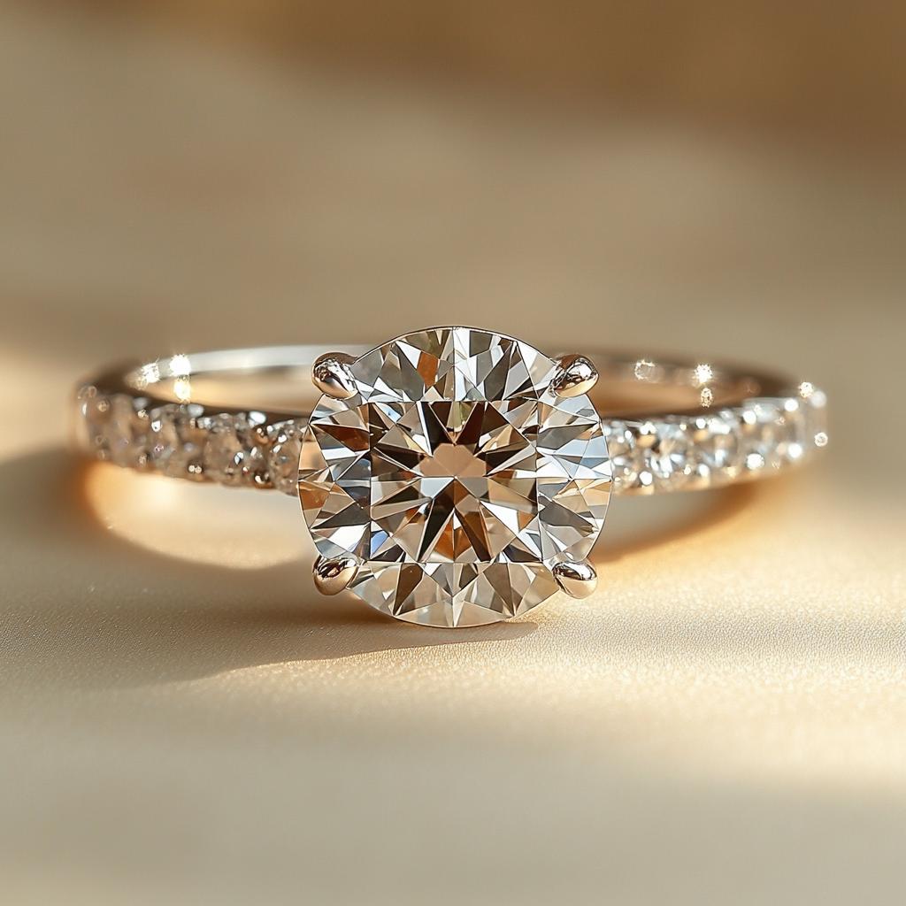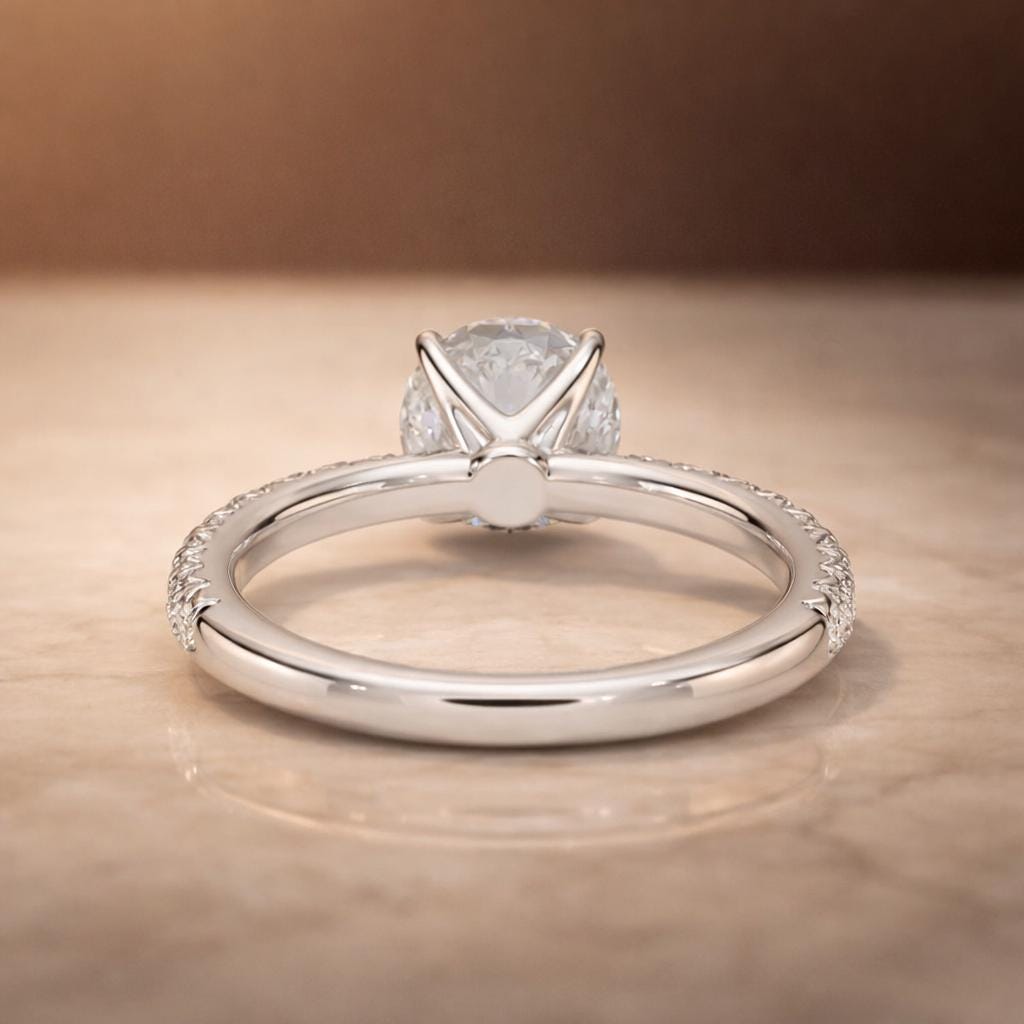 1 Carat Natural Round Diamond Engagement Ring: GIA Certified Classic Solitaire Half Eternity Band