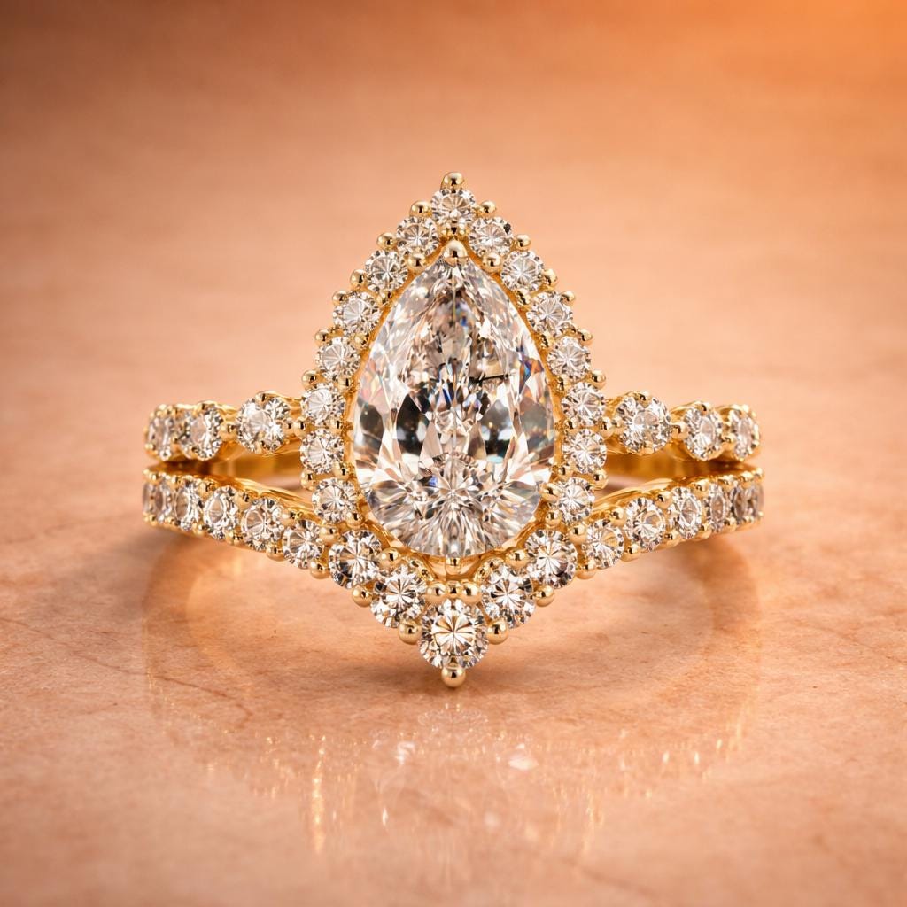 • Style: Luxury bridal engagement set featuring an elegant pear shape with sparkle from every side