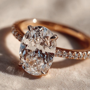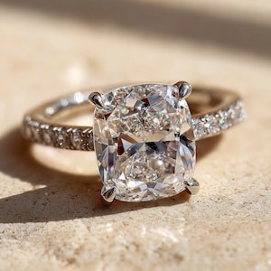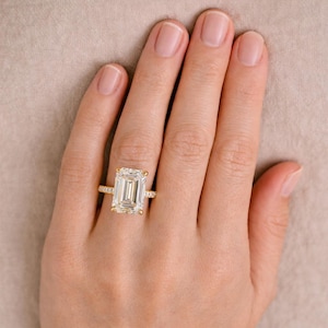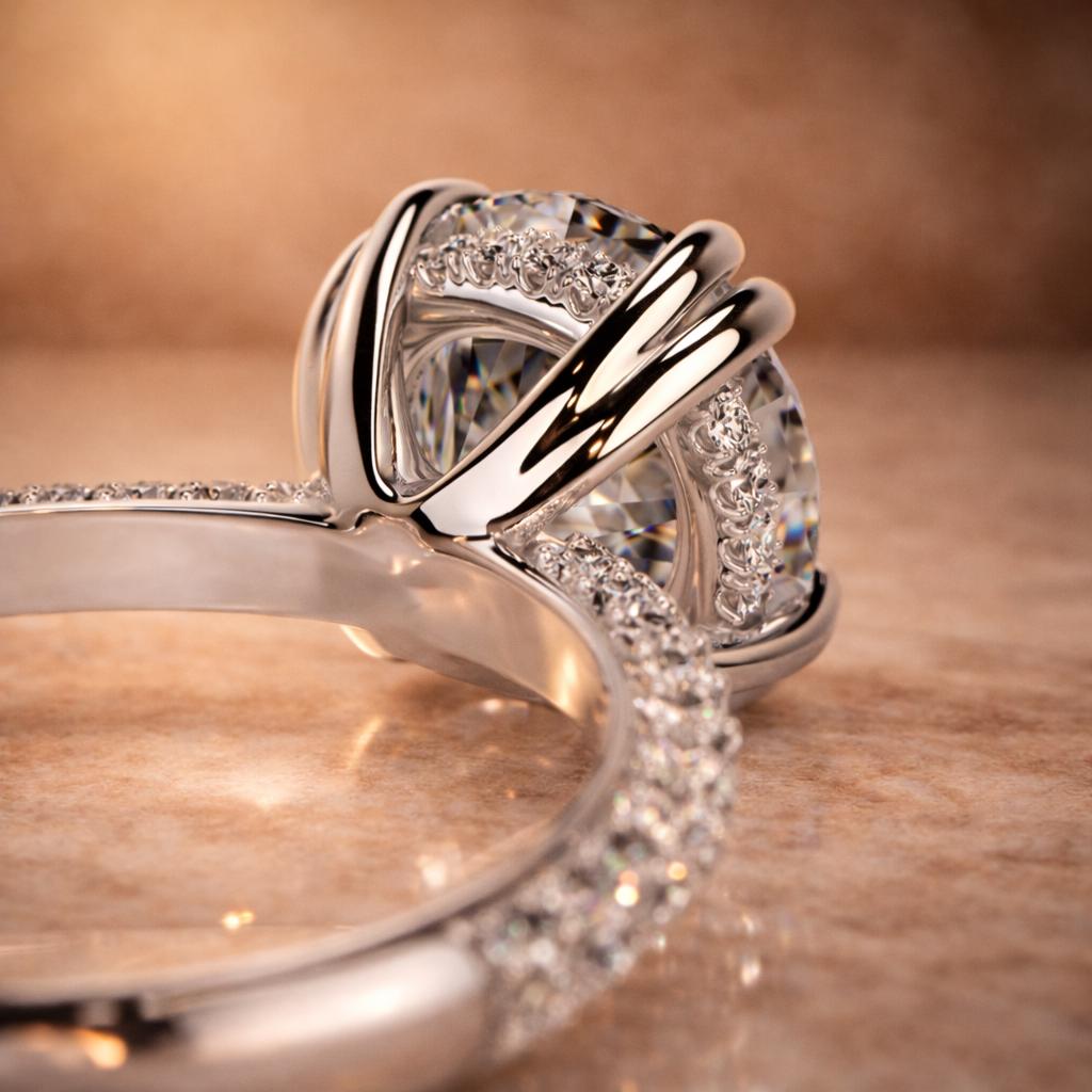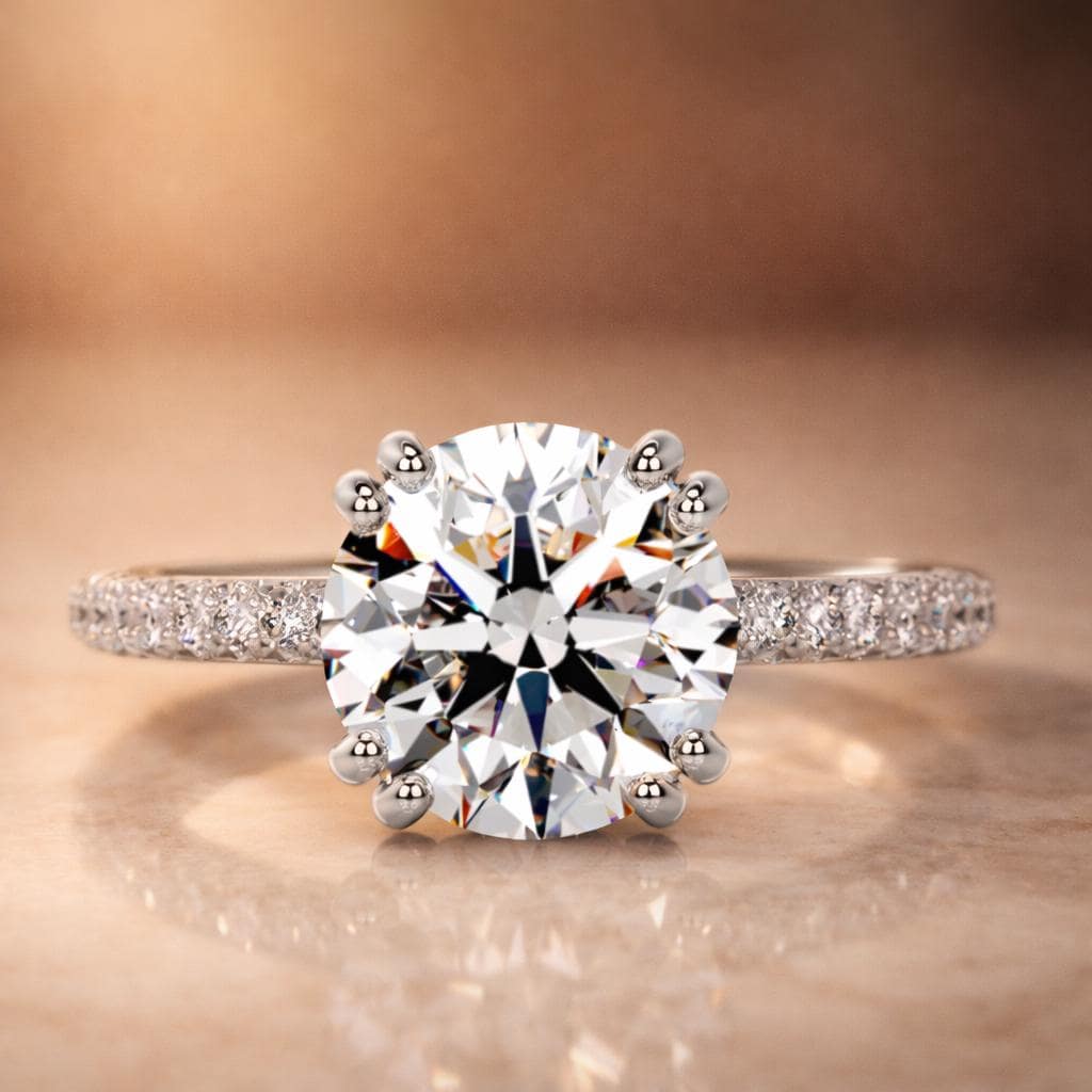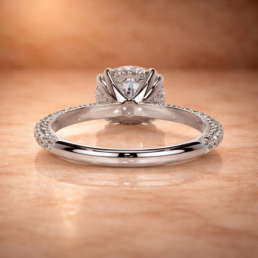 4 Carat Lab Grown Diamond Engagement Ring: 14K White Gold Hidden Halo