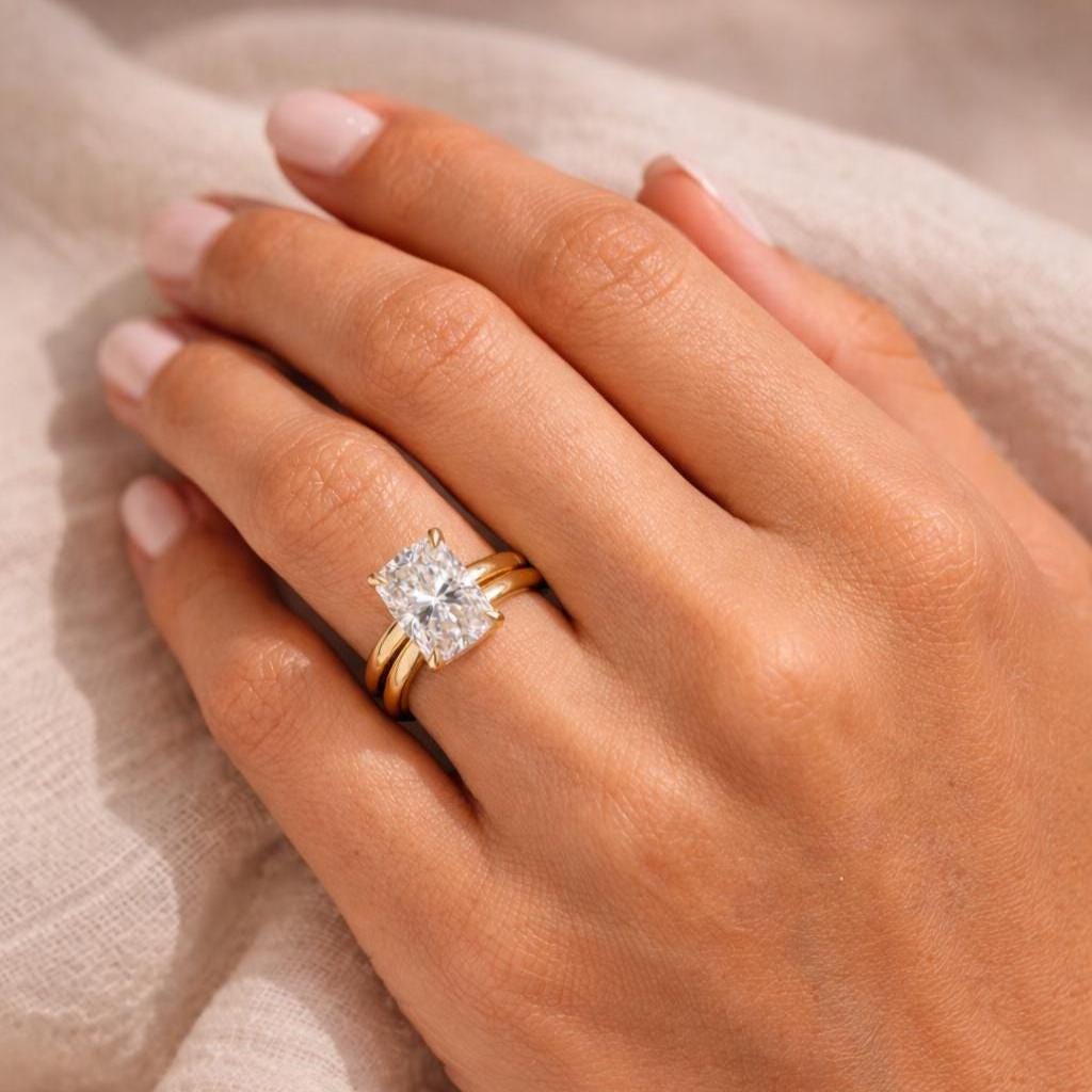✨ Elegant Radiant Cut Bridal Set in Solid 14K Gold