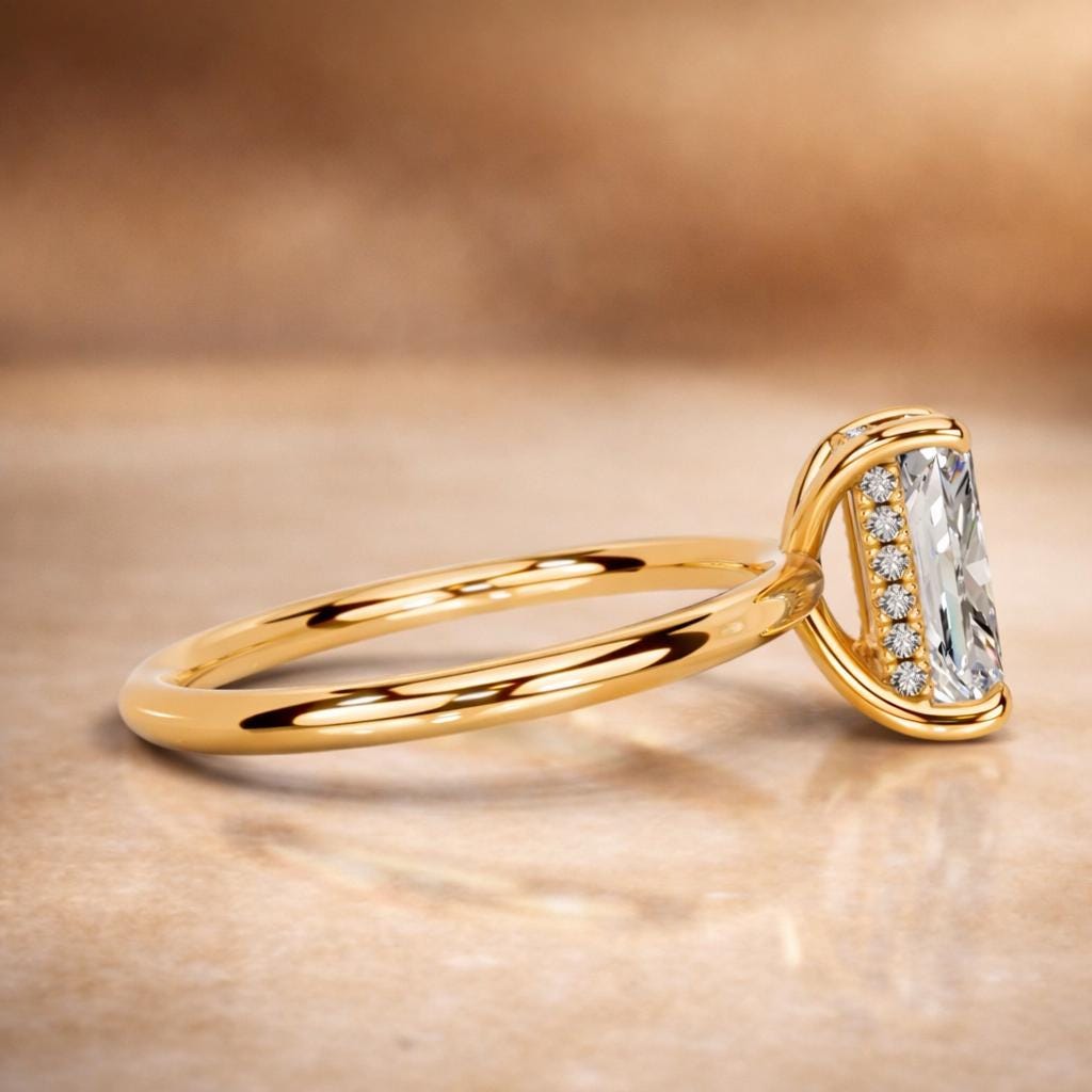 2ct Elongated Radiant Cut Lab Diamond Bridal Set | 14K Gold Hidden Halo