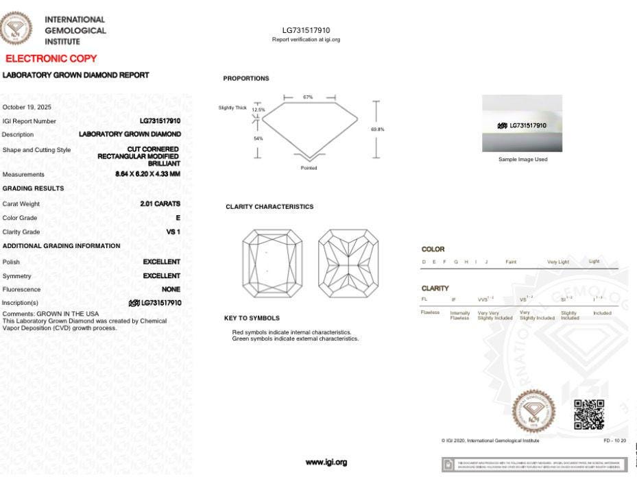 • Center Stone: 2.00 Carat Lab-Grown Diamond