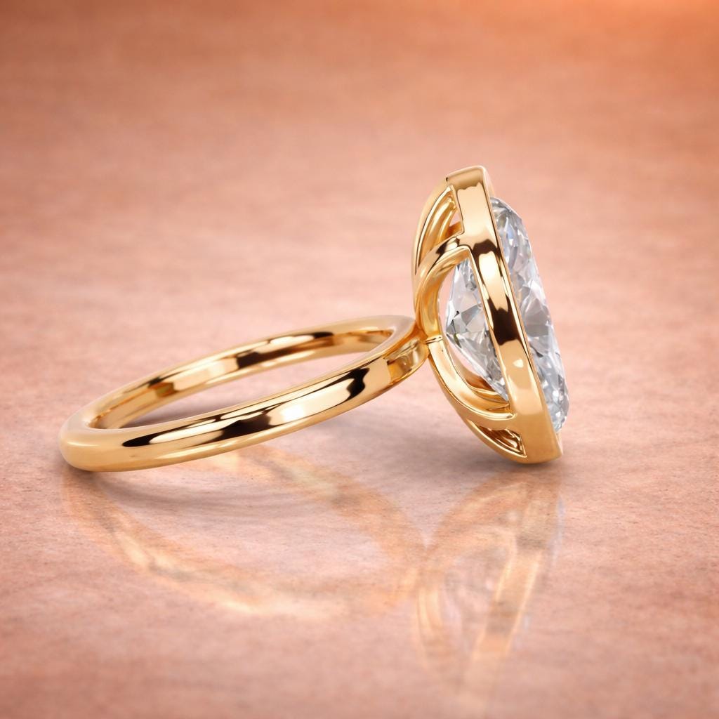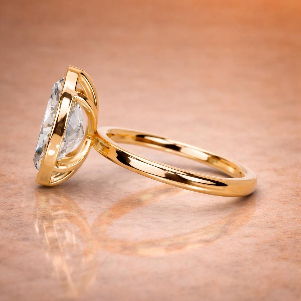 2ct Marquise Lab Diamond Engagement Ring Set | 18K Yellow Gold Bezel Solitaire