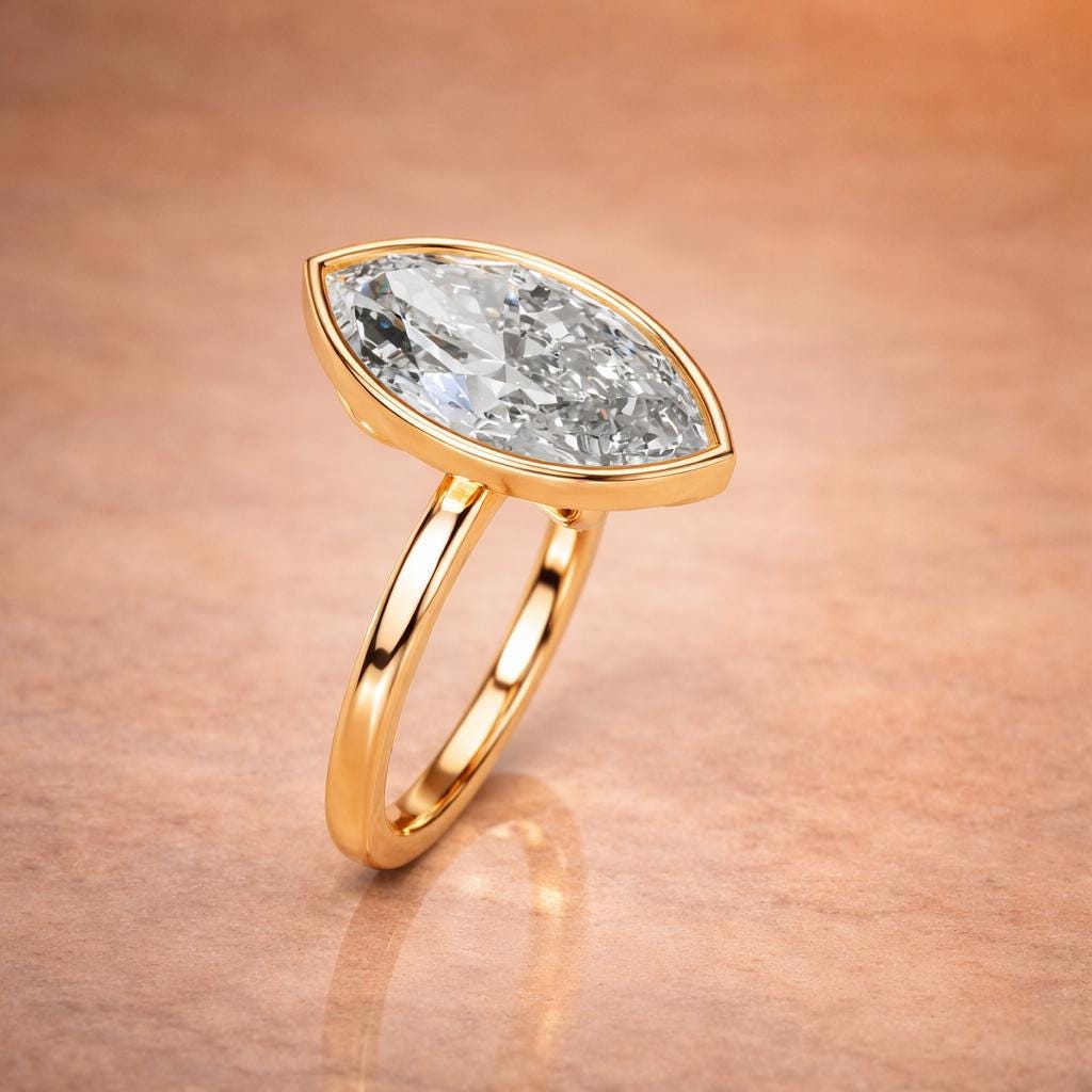 This stunning 2 carat marquise-cut lab grown diamond engagement ring is crafted in luxurious 18K yellow gold with a sleek solitaire bezel setting. Featuring a beautifully elongated marquise diamond with brilliant sparkle, this classic yet modern design highlights the stone’s fire and elegance. The center stone is IGI certified, graded E color and VVS2 clarity, offering exceptional brilliance and eye-clean perfection at a remarkable value.