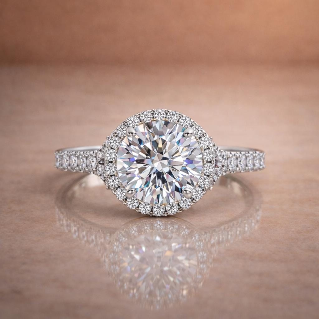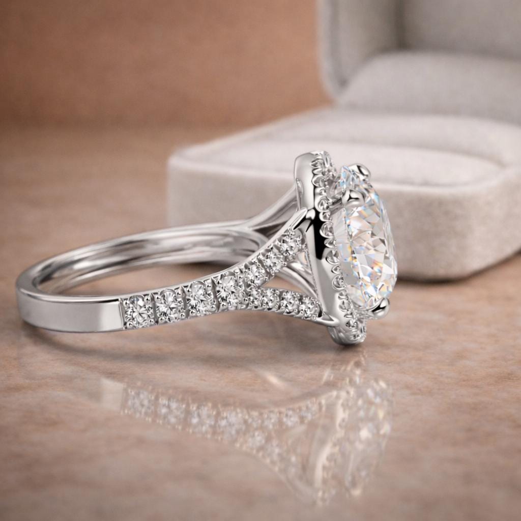 ✅ Split shank halo setting with side diamonds (0.50 ct)