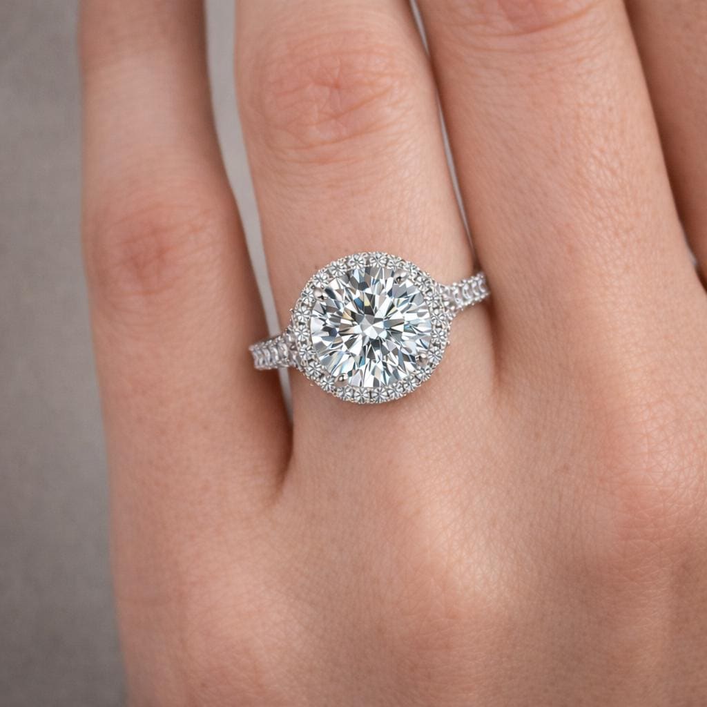 4.50 Carat Round Lab Diamond Engagement Ring – 14K White Gold Split Shank Halo