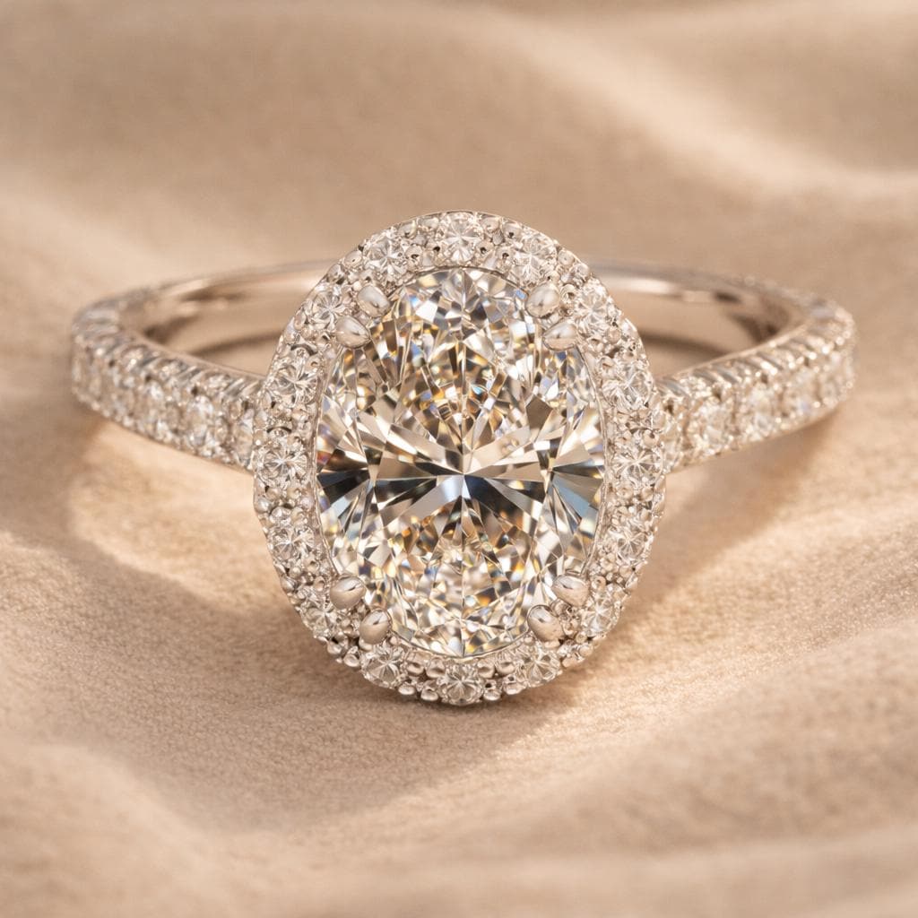 ✨ 3 Carat Oval Halo Lab Diamond Engagement Ring – IGI Certified