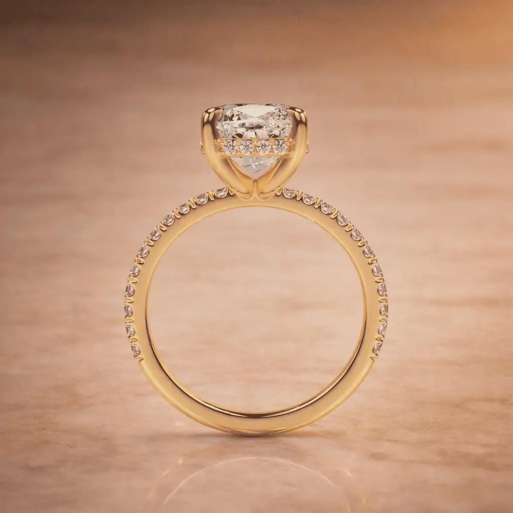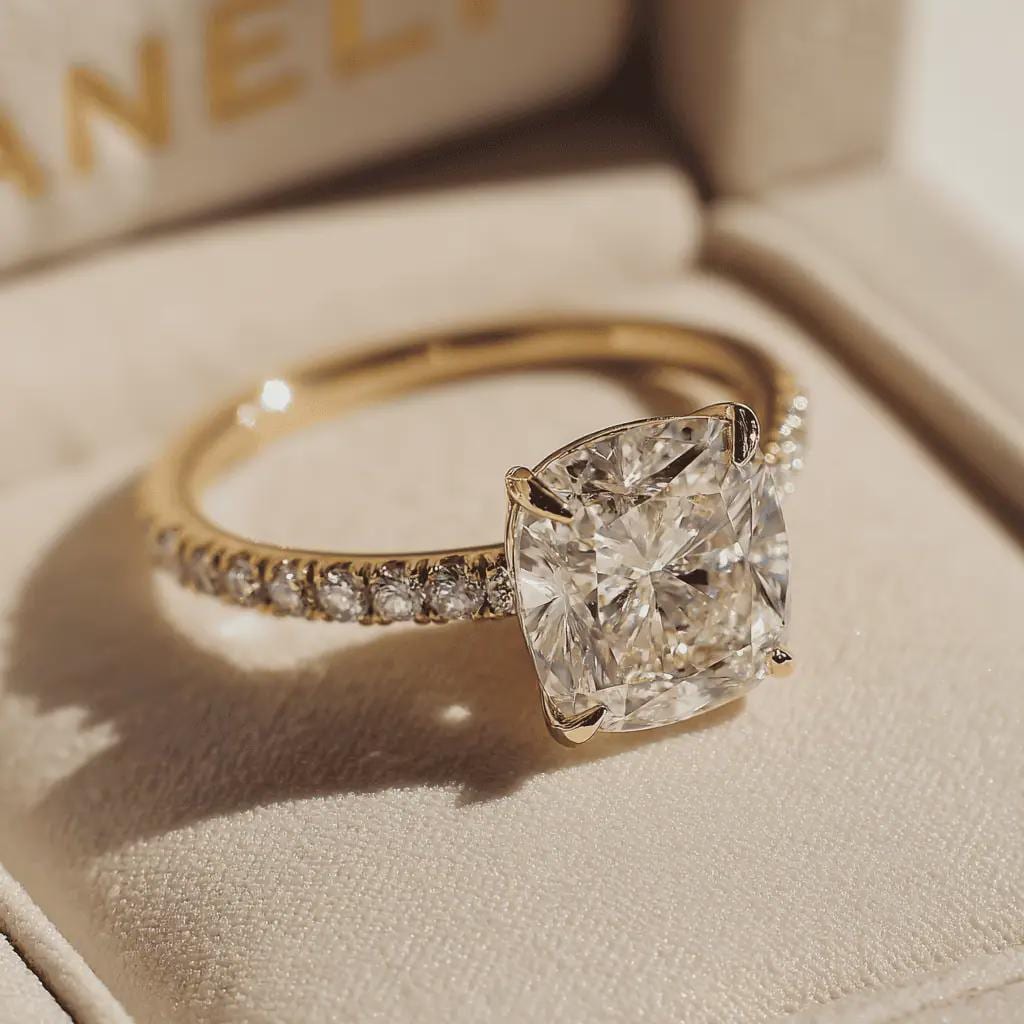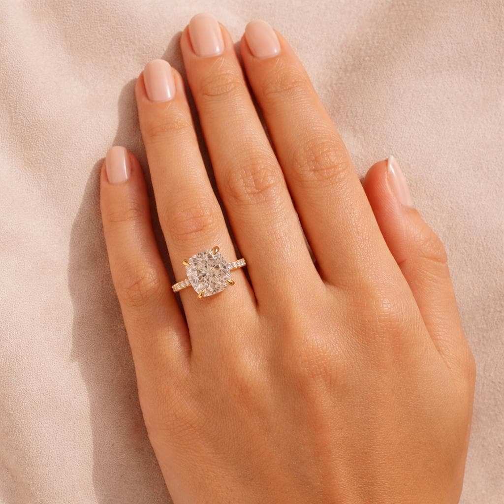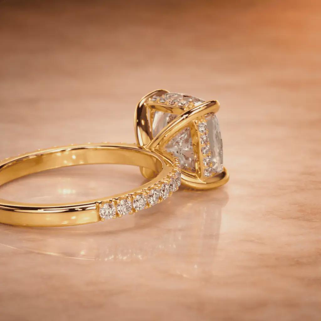3.50 Carat Cushion Cut Lab Grown Diamond Engagement Ring With Accent Gold