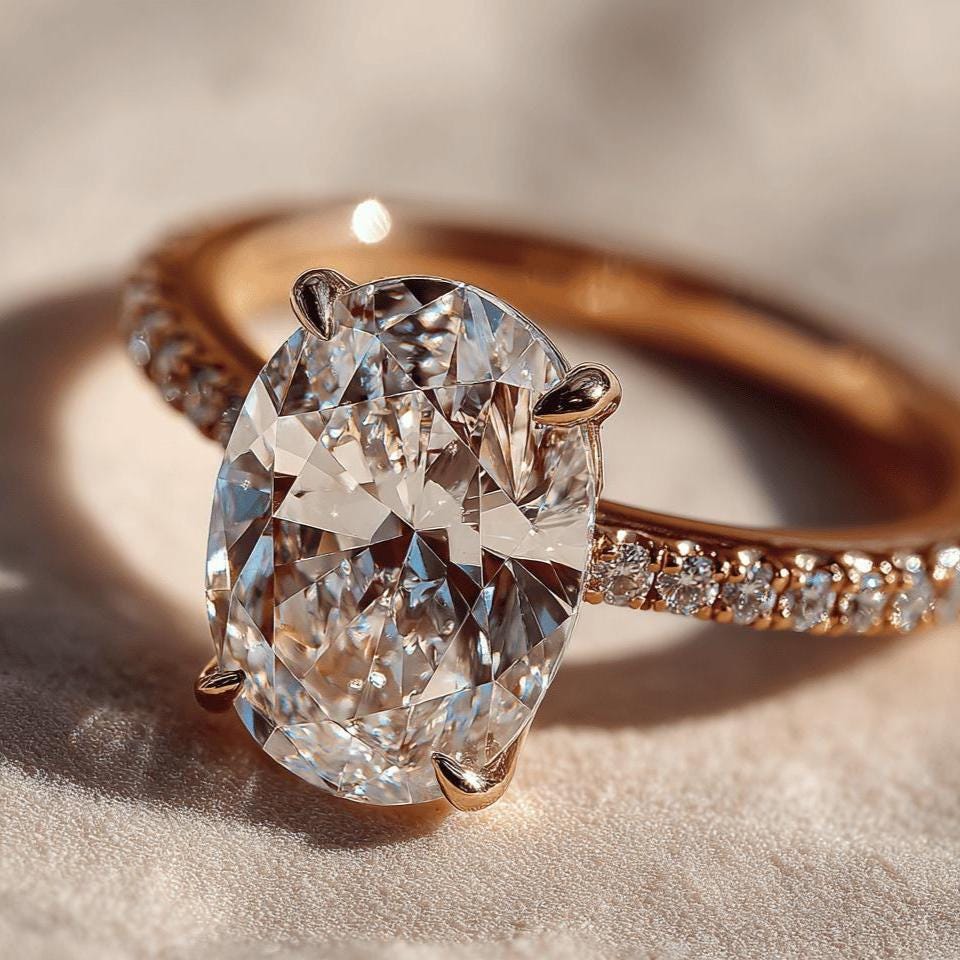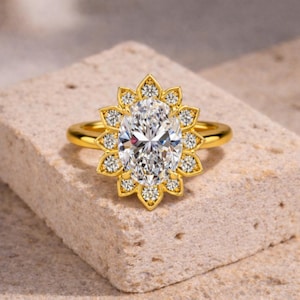 3.50 carat Oval Lab Diamond Engagement Ring, 14k Yellow Gold with Side Round Diamonds