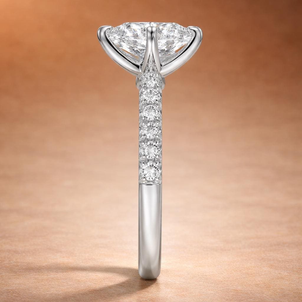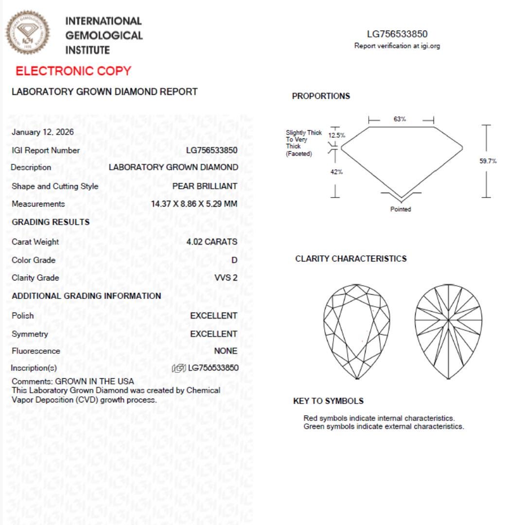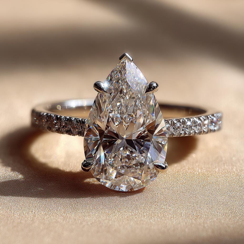 • Center Stone: 4 Carat Lab Grown Diamond (Pear Shape)