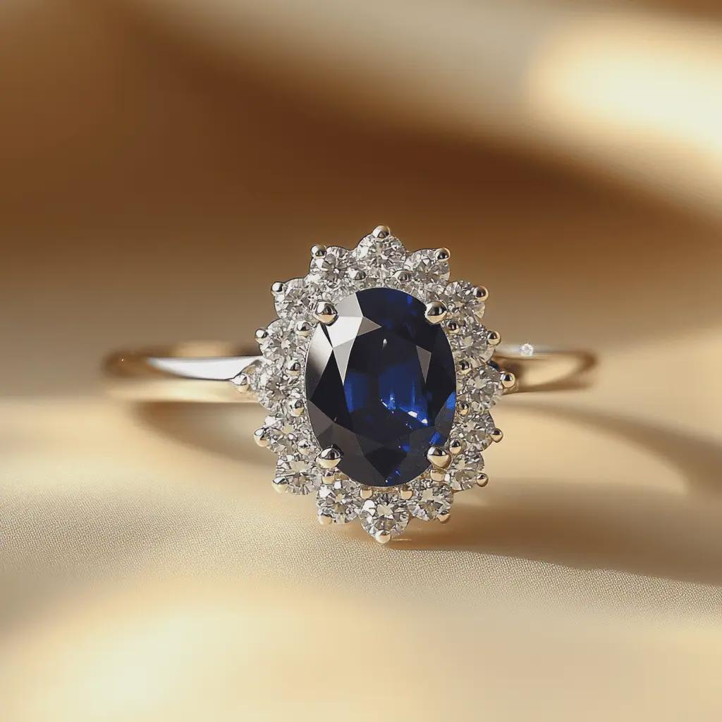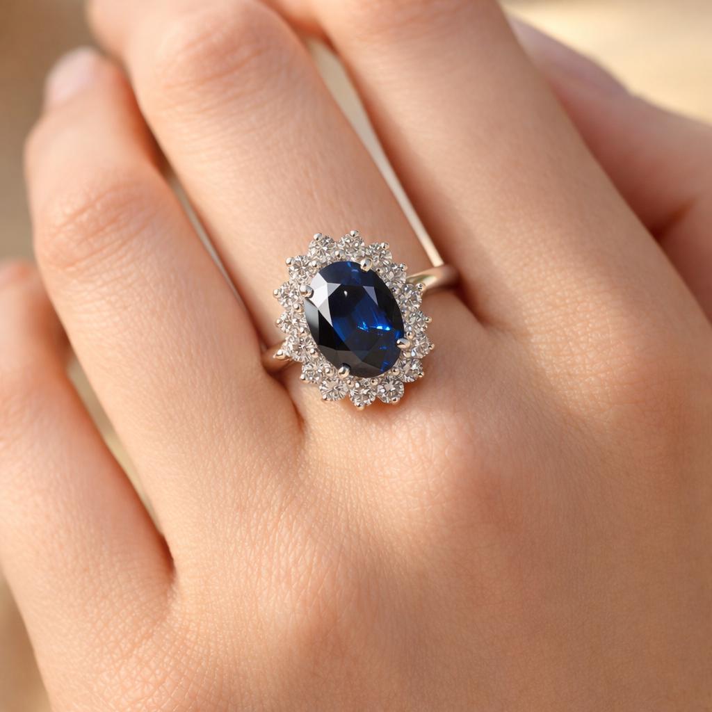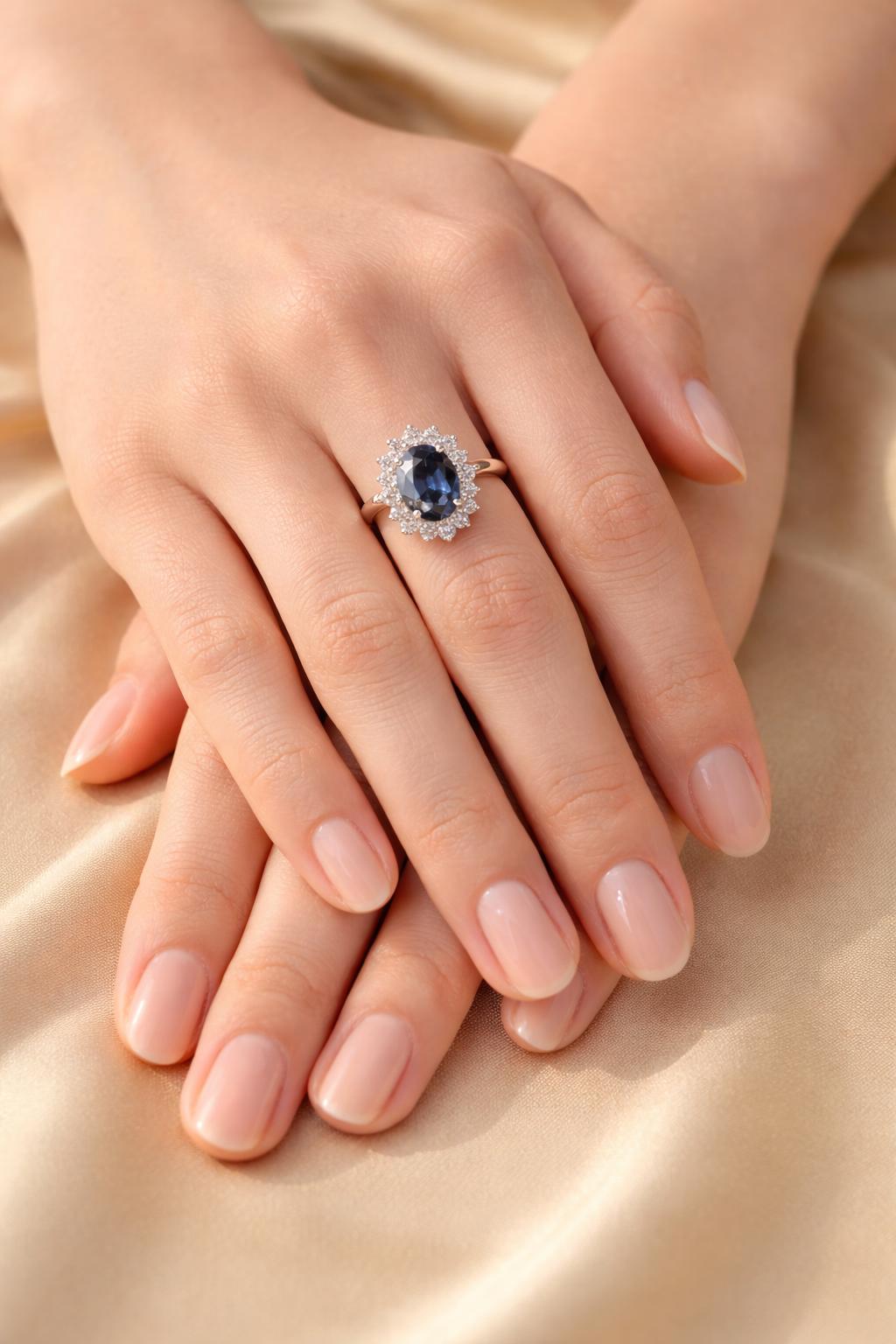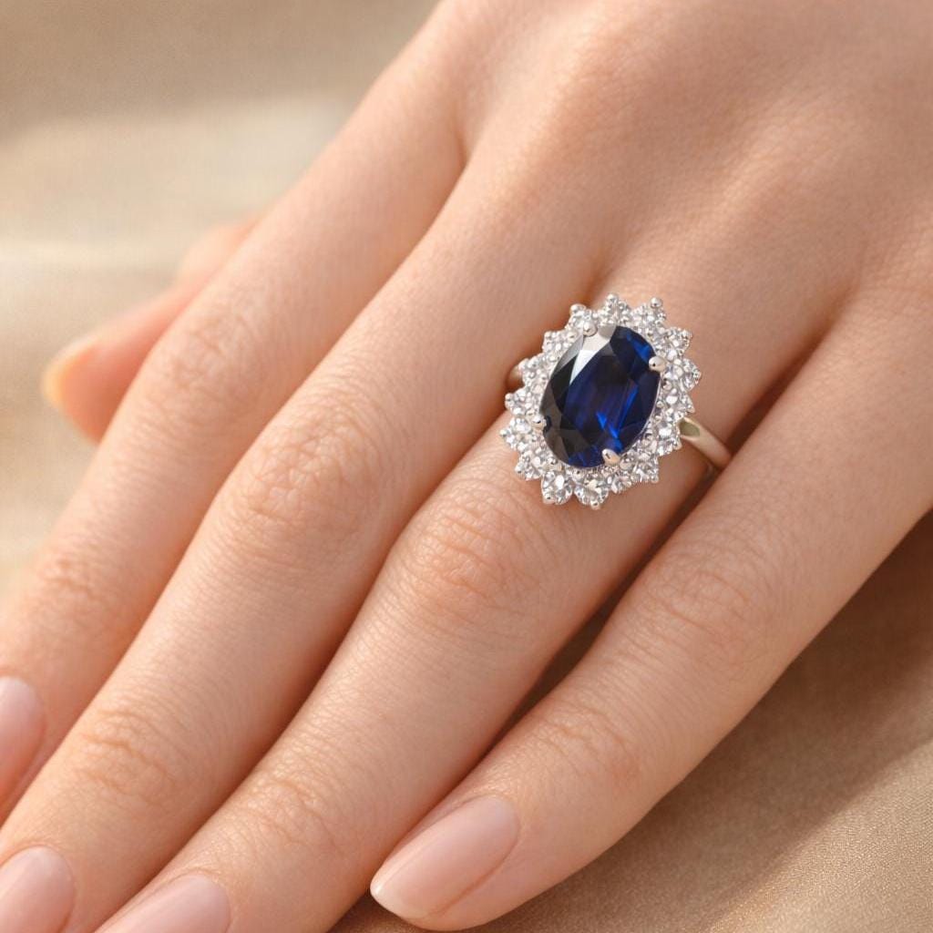 Stunning Oval Shape 1.60 Carat Sky Blue Genuine Sapphire Engagement Ring,